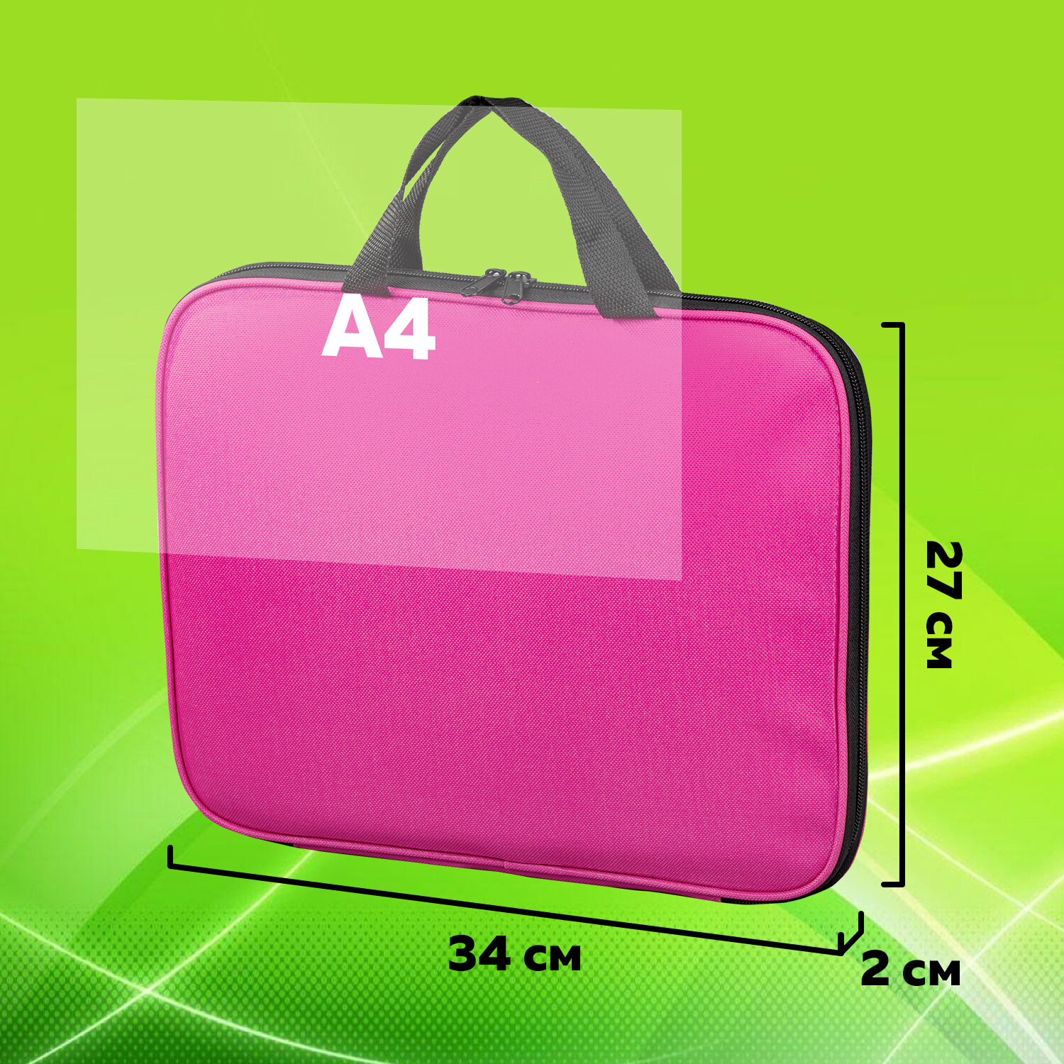 Выполнена из плотного полиэстера, что позволяет защитить документы, учебные пособия и прочие бумаги от замятий и повреждений. Ручки-тесьма. Застежка-молния по периметру папки, на молнии расположены 2 бегунка, поэтому папку можно открывать с любой стороны, а также полностью раскрыть на 180 градусов. Папка на молнии с ручками STAFF EVERYDAY, А4, полиэстер, ярко-розовая, 270734