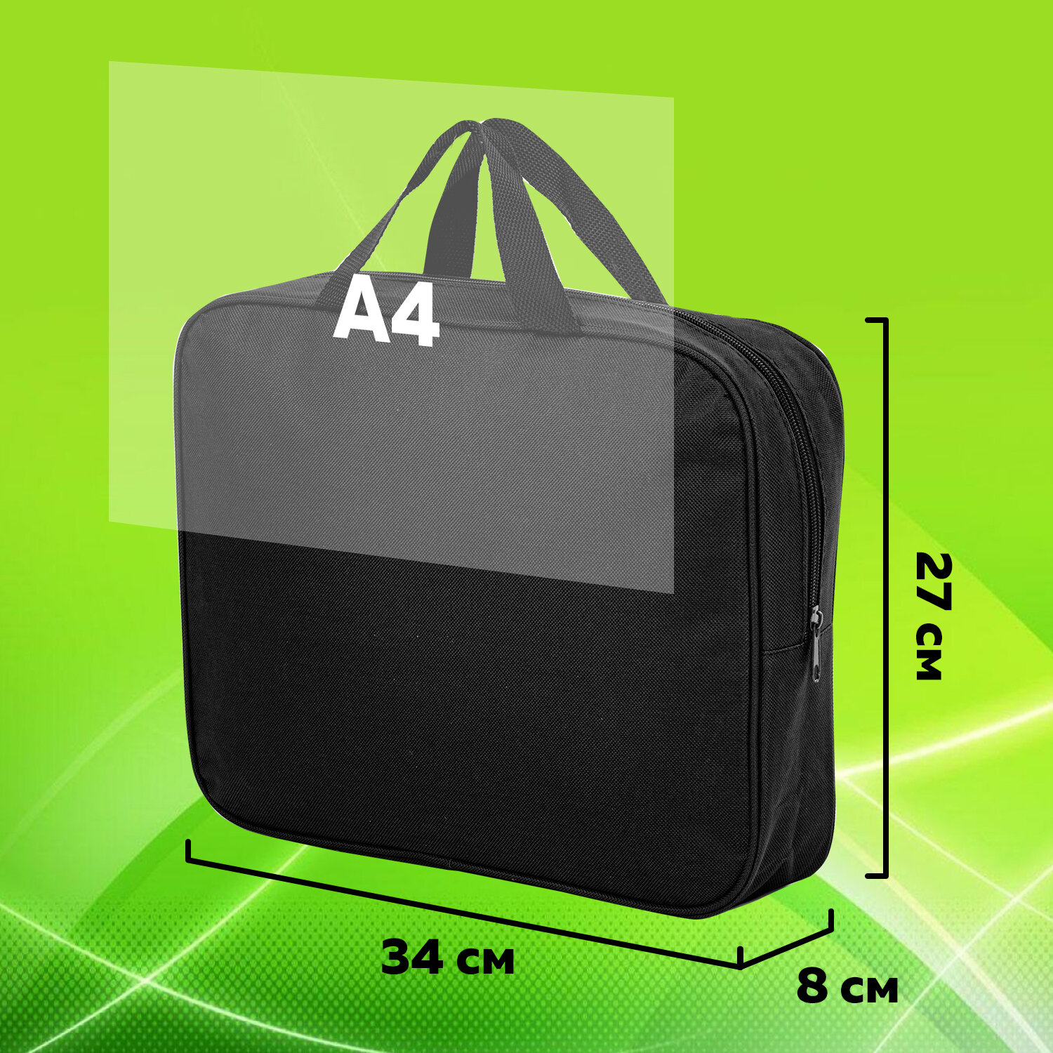 Индивидуальная упаковка - полиэтиленовый пакет. Папка на молнии с ручками STAFF EVERYDAY, А4, ширина 80 мм, полиэстер, черная, 270918