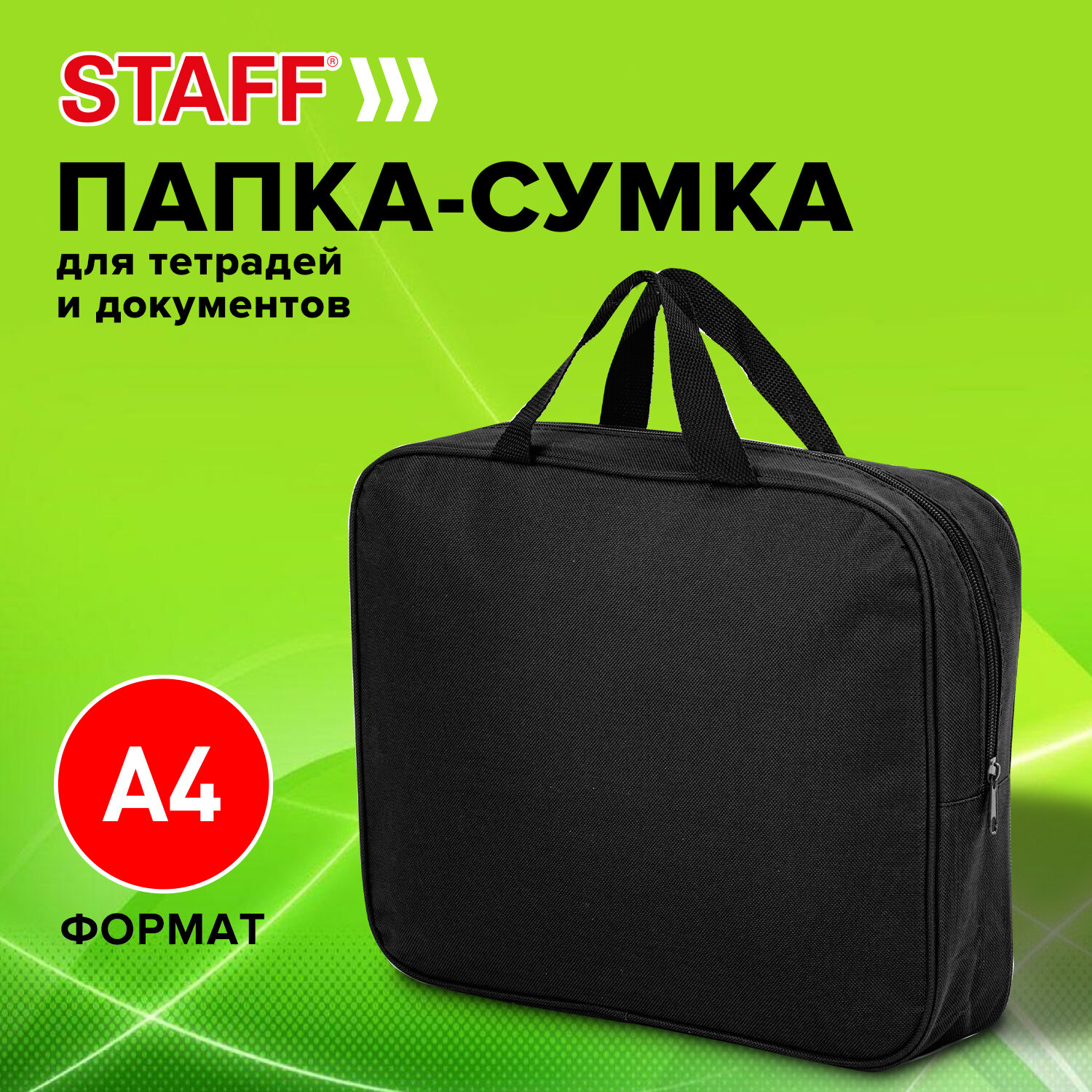 - Папка на молнии с ручками STAFF EVERYDAY, А4, ширина 80 мм, полиэстер, черная, 270918