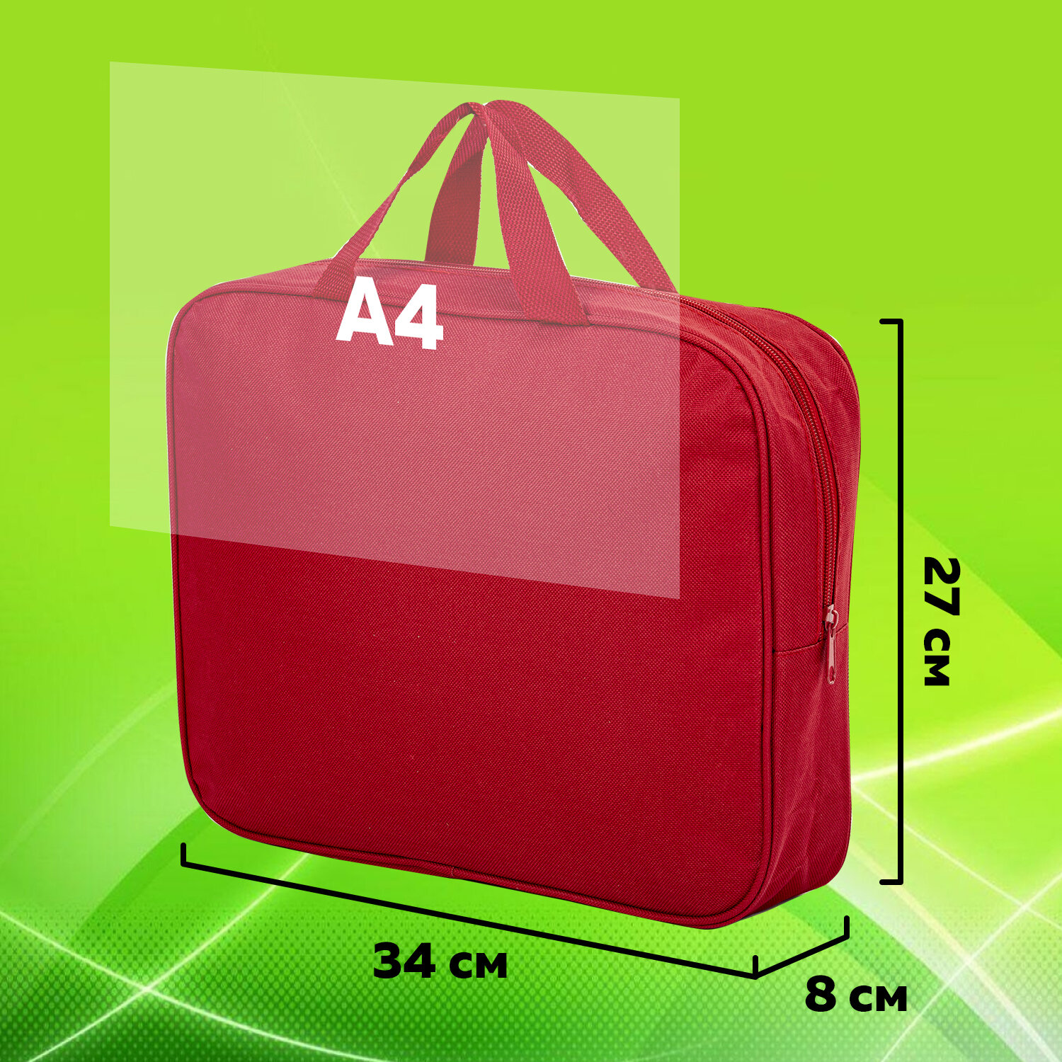 Индивидуальная упаковка - полиэтиленовый пакет. Папка на молнии с ручками STAFF EVERYDAY, А4, ширина 80 мм, полиэстер, красная, 270739