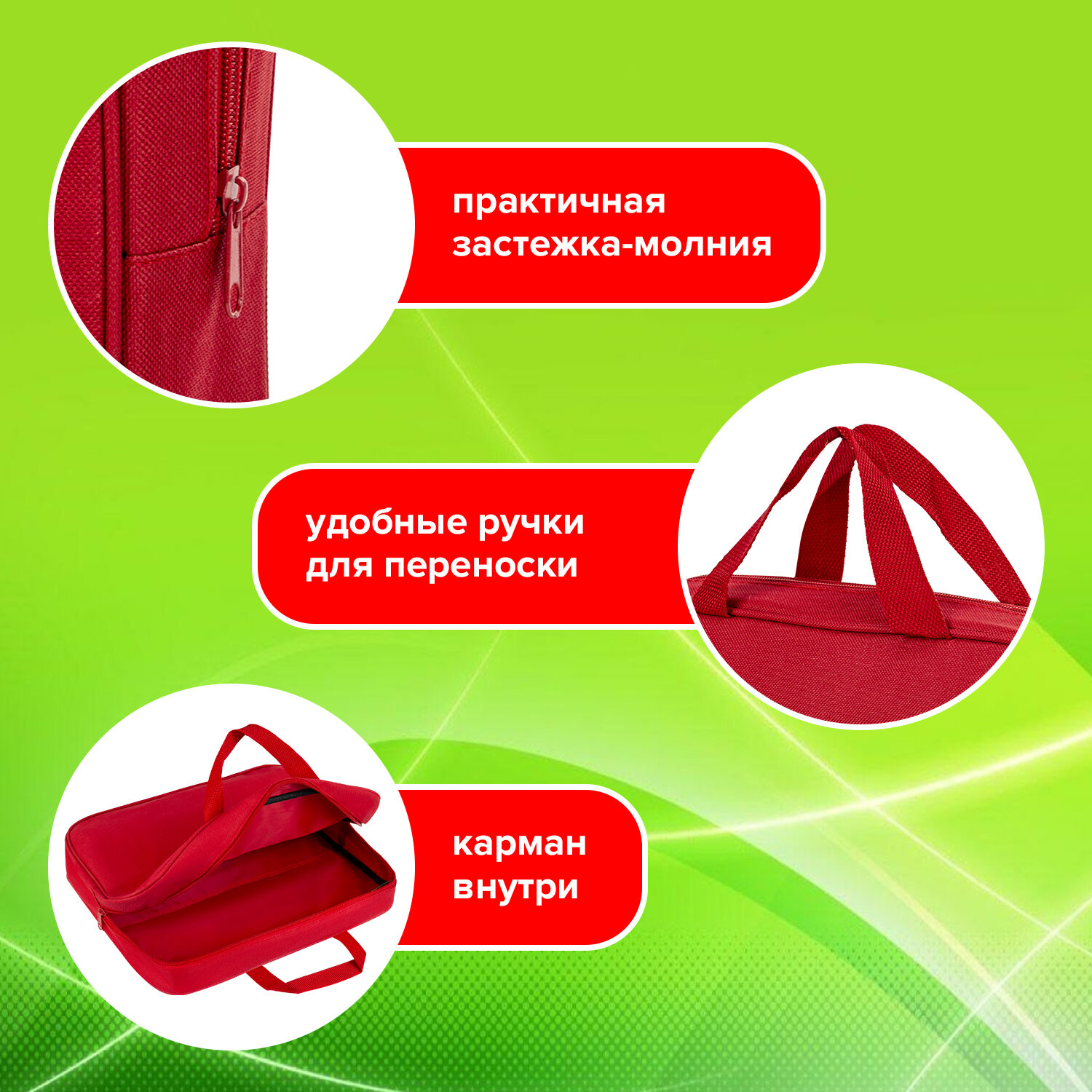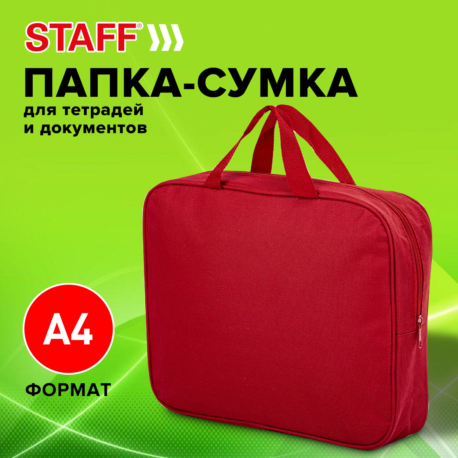 - Папка на молнии с ручками STAFF EVERYDAY, А4, ширина 80 мм, полиэстер, красная, 270739