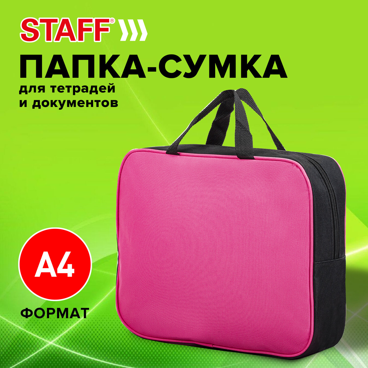 - Папка на молнии с ручками STAFF EVERYDAY, А4, ширина 80 мм, полиэстер, розовая, 270743