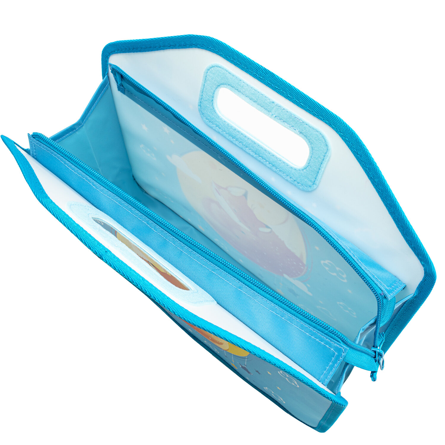Индивидуальная упаковка (полиэтиленовый пакет с европодвесом) сохраняет товар при транспортировке и позволяет удобно разместить его для клиента. Папка-сумка ЮНЛАНДИЯ, 1 отделение, фетровые ручки, 34х30х11 см, "Moon fox", 270996