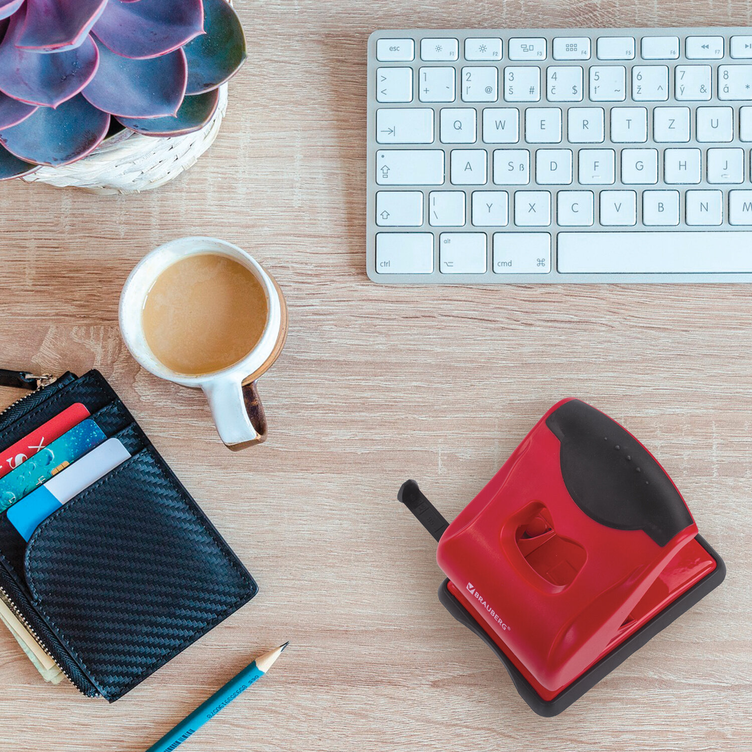 Дырокол BRAUBERG t;Jet Prot; по доступной цене навсегда станет незаменимым помощником при работе с документацией. Дырокол BRAUBERG "JET PRO", до 40 листов, красно-черный, 228603