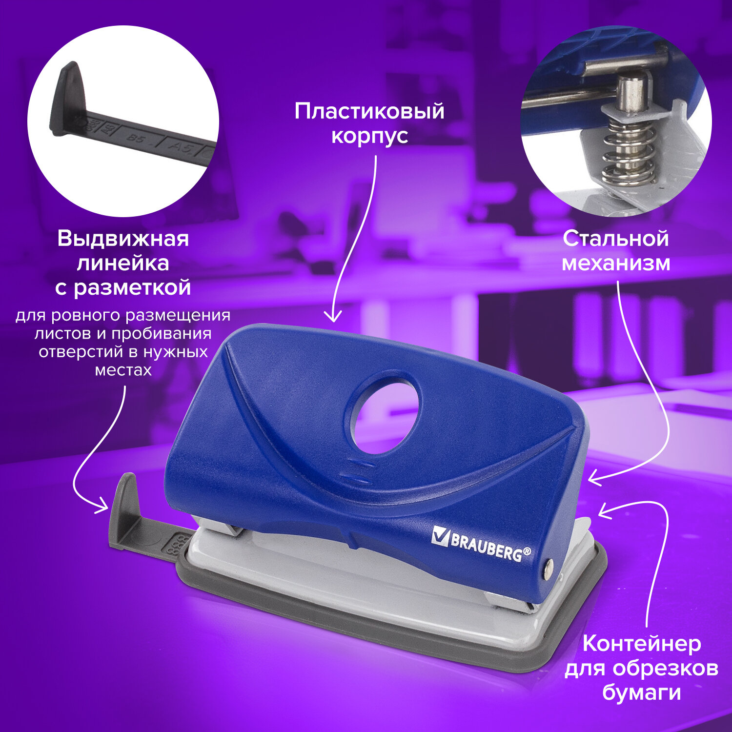 - Дырокол BRAUBERG "Original", до 10 листов, синий, 227785