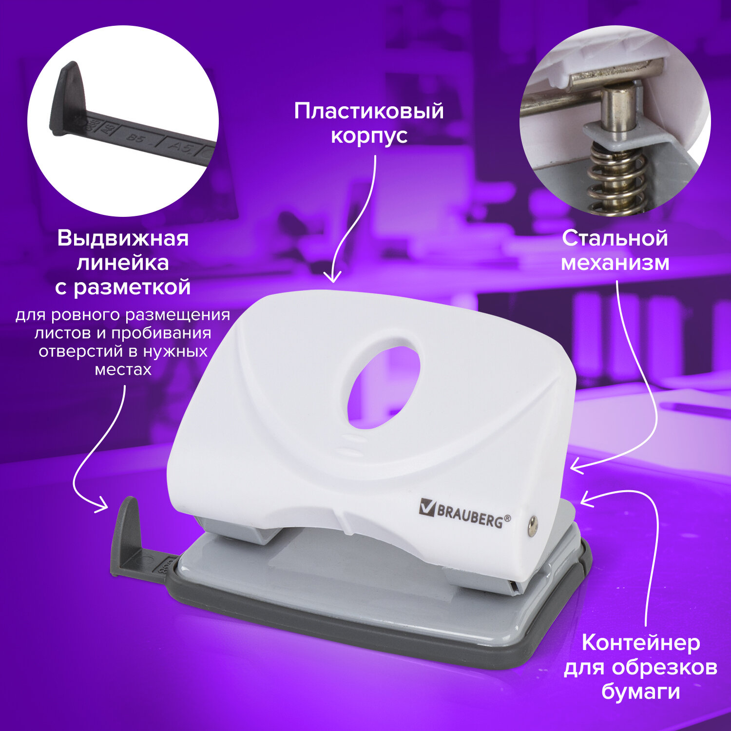 - Дырокол BRAUBERG "Original", до 20 листов, белый, 227787