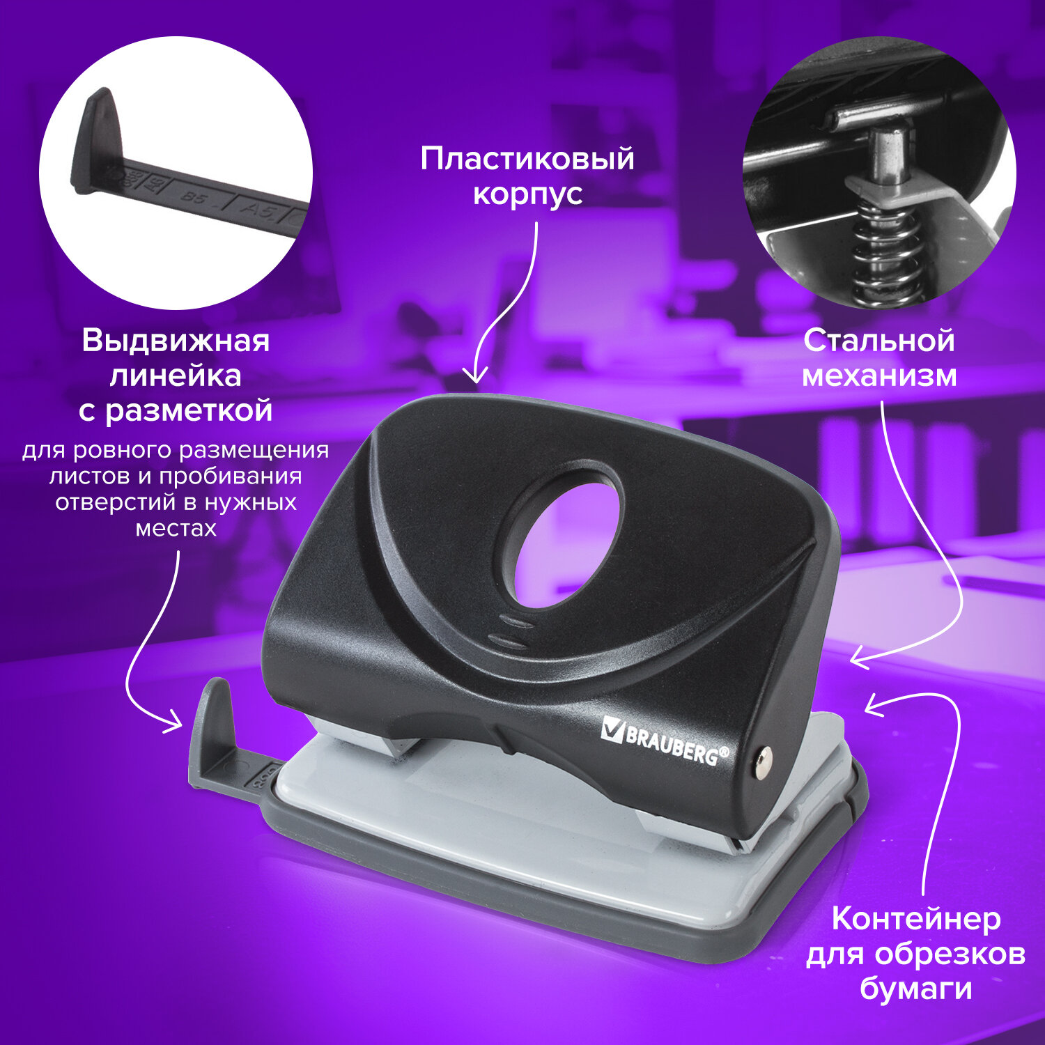 - Дырокол BRAUBERG "Original", до 20 листов, черный, 222539