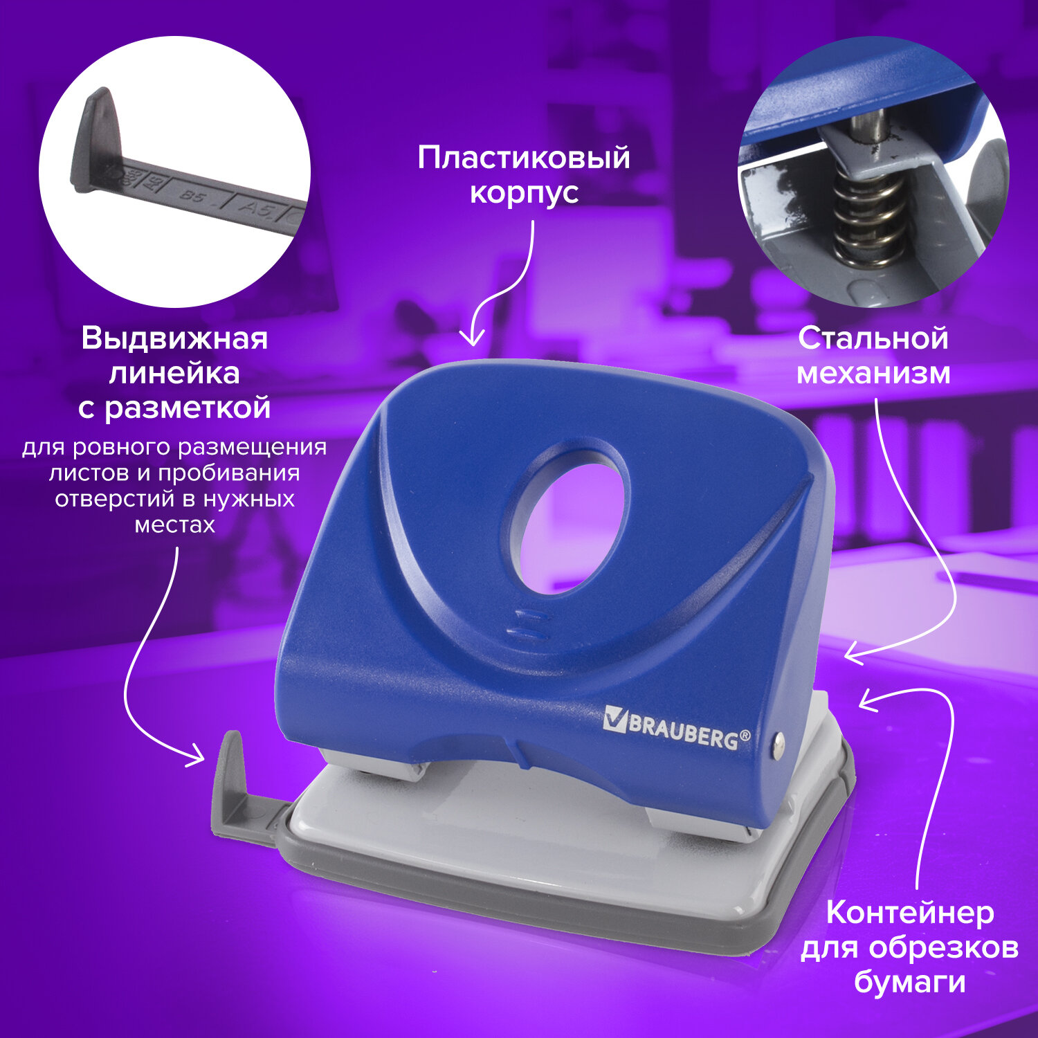 - Дырокол BRAUBERG "Original", до 25 листов, синий, 222543