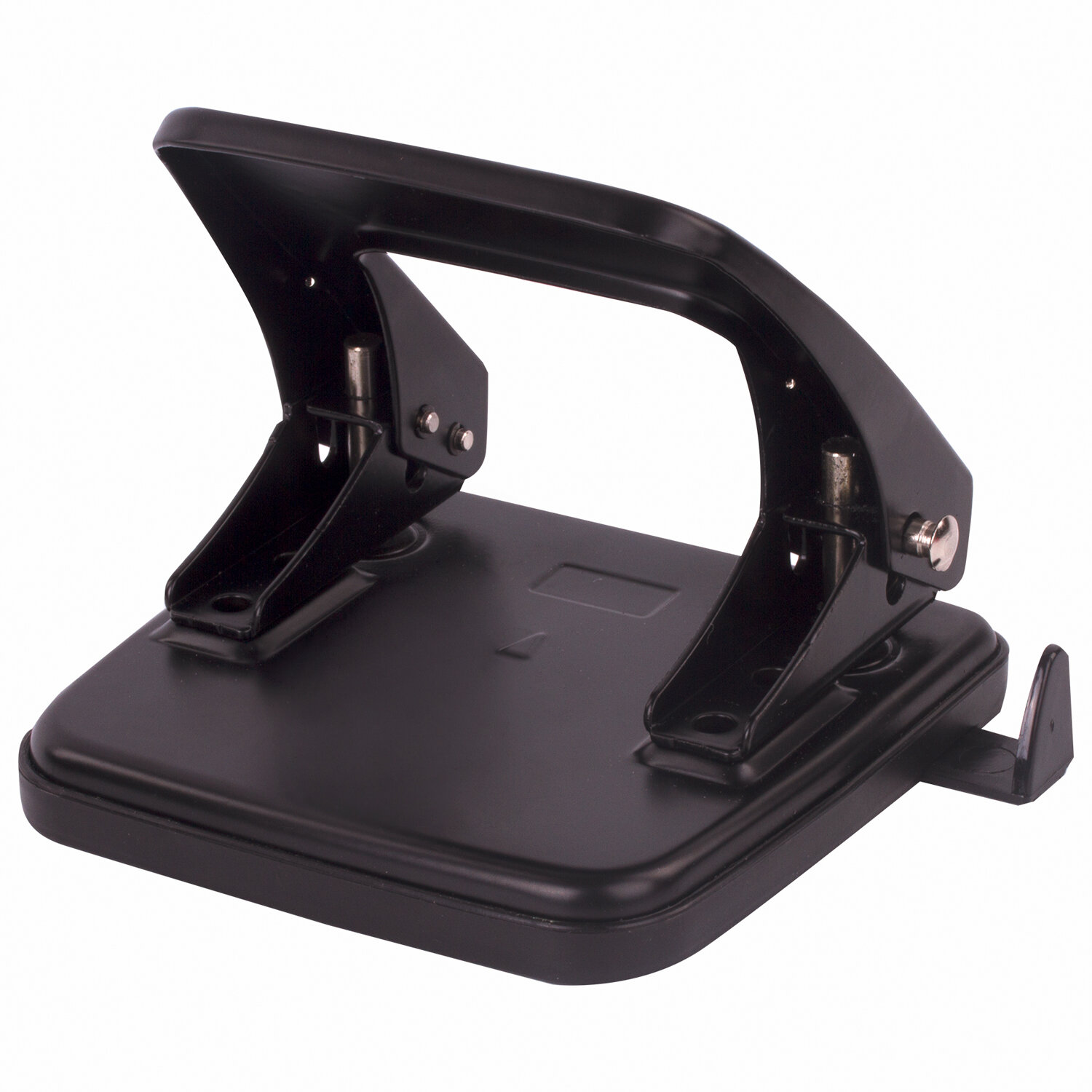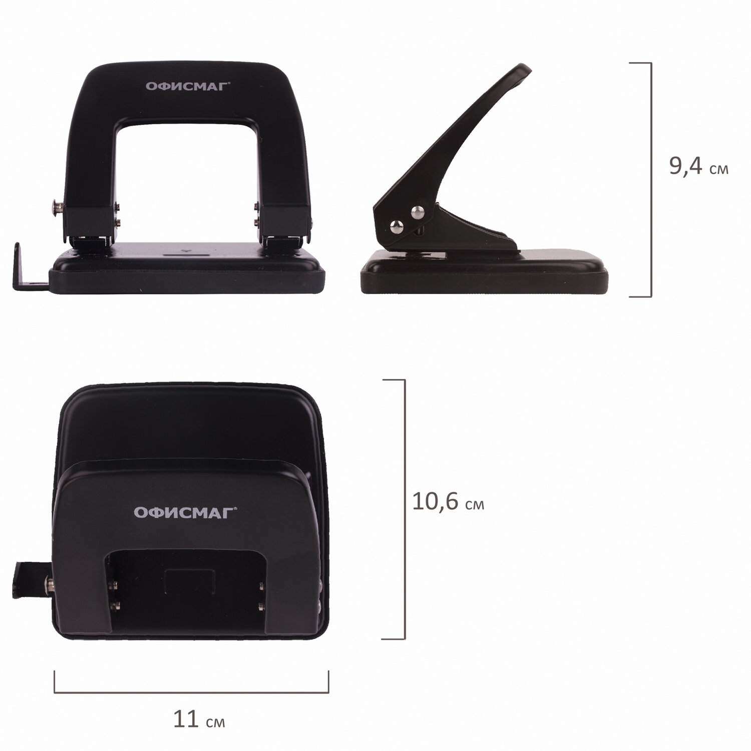 Металлический дырокол пробивает до 25 листов бумаги. Благодаря качественным пробойникам обеспечивает легкое и точное пробивание бумаги. Количество пробиваемых отверстий - 2, диаметр каждого - 6 мм, расстояние между отверстиями - 8 мм. Метка центрирования поможет ровно разместить листы, а ограничительная линейка - пробить отверстия в нужных местах. Оснащен контейнером для сбора мусора, а также блокиратором для компактного хранения. Классический черный цвет отлично впишется в любой интерьер. Дырокол металлический ОФИСМАГ, до 25 листов, черный, 229693