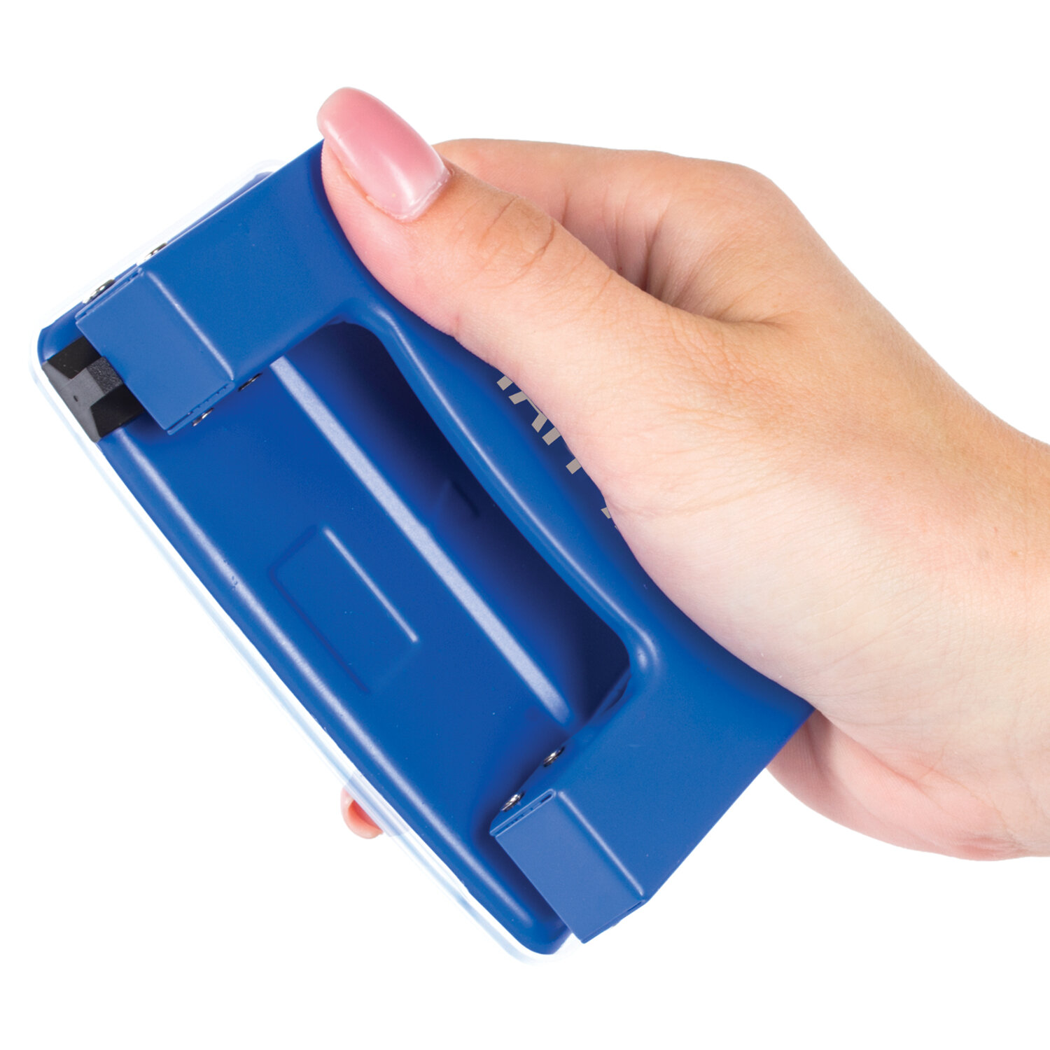 Полностью металлический дырокол пробивает до 10 листов бумаги. Благодаря качественным пробойникам обеспечивает легкое и точное пробивание бумаги. Количество пробиваемых отверстий - 2, диаметр каждого - 6 мм, расстояние между отверстиями - 8 мм. Метка центрирования поможет ровно разместить листы. Оснащен контейнером для сбора мусора, а также блокиратором для компактного хранения. Дырокол металлический STAFF "EVERYDAY", до 10 листов, без линейки, синий, 224648