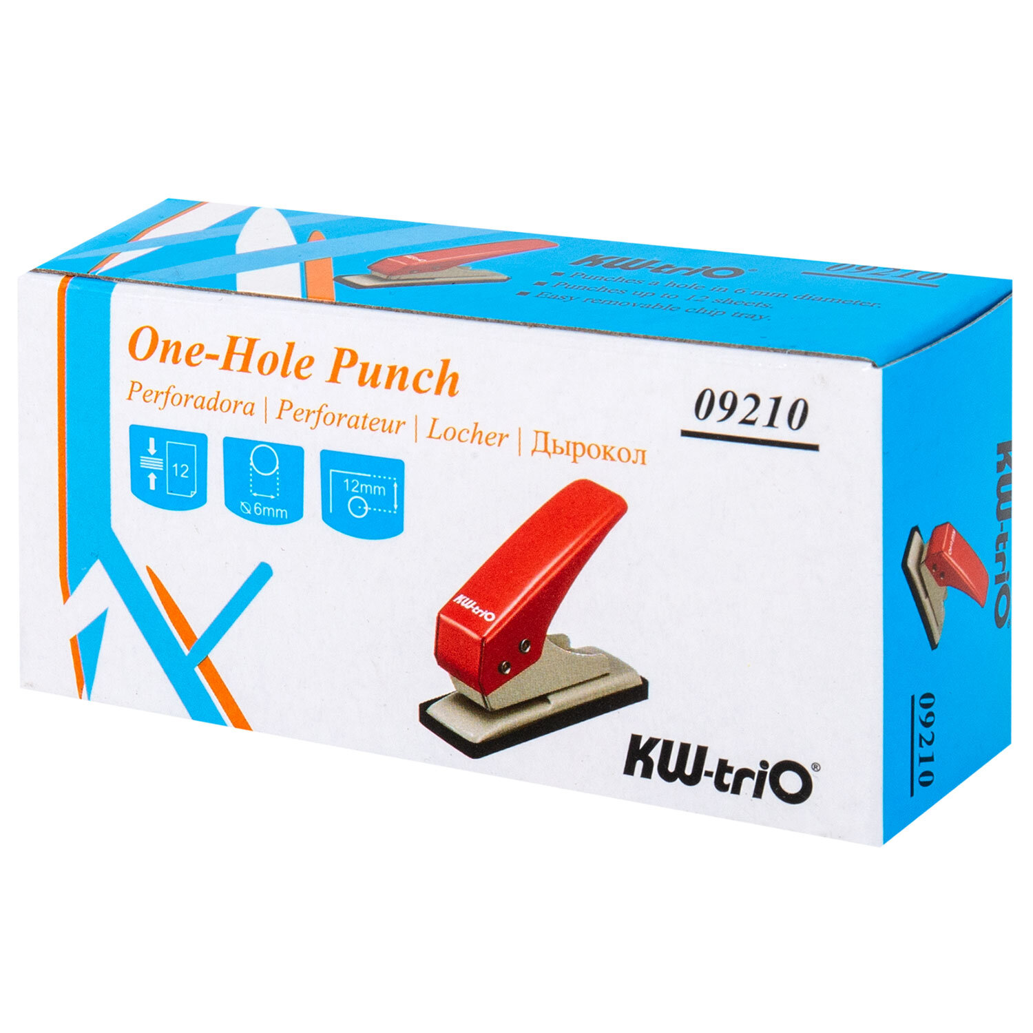 - Дырокол на 1 отверстие KW-trio, до 12 листов, ассорти (красный, синий, зеленый), 921, -921