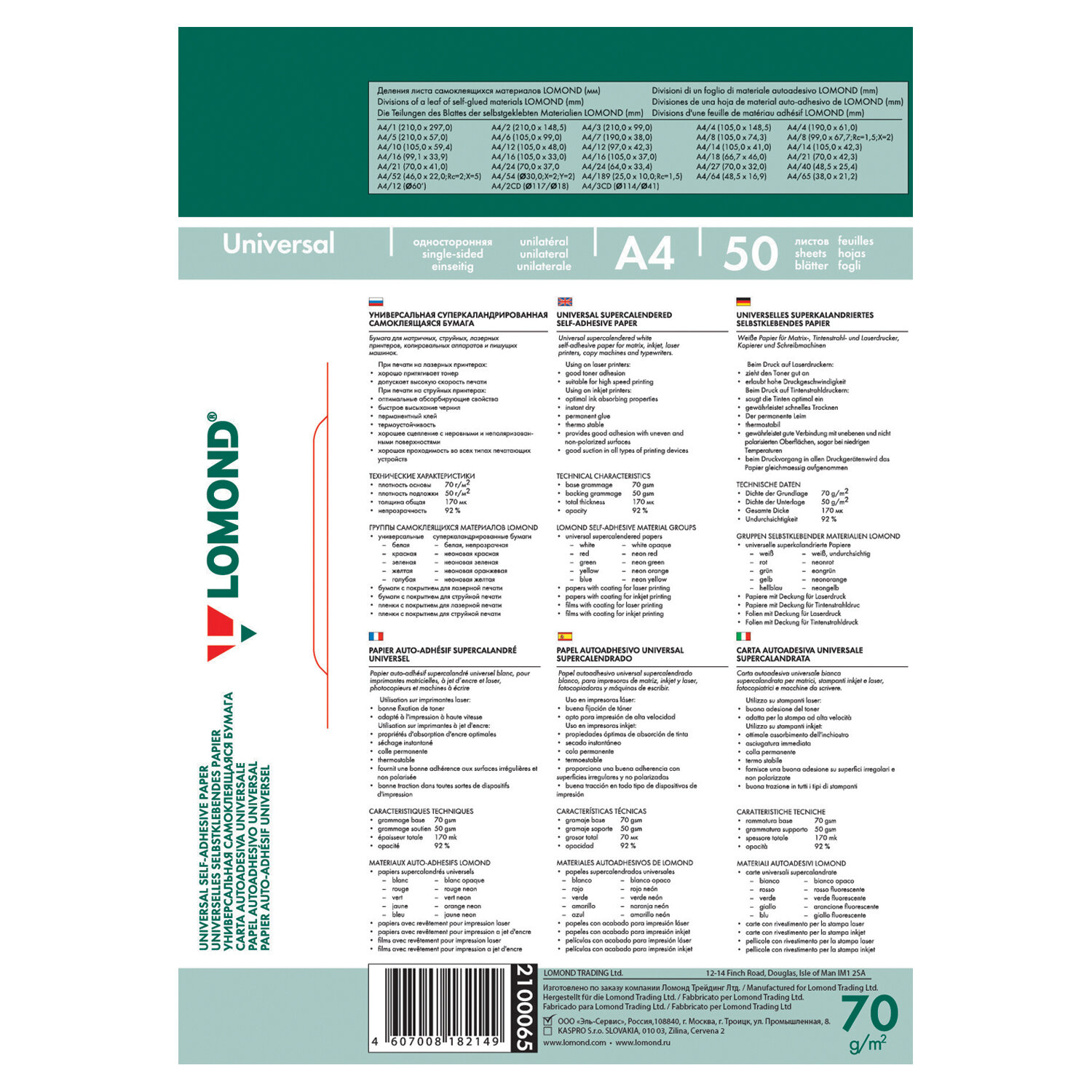 Этикетки самоклеящиеся универсальные LOMOND