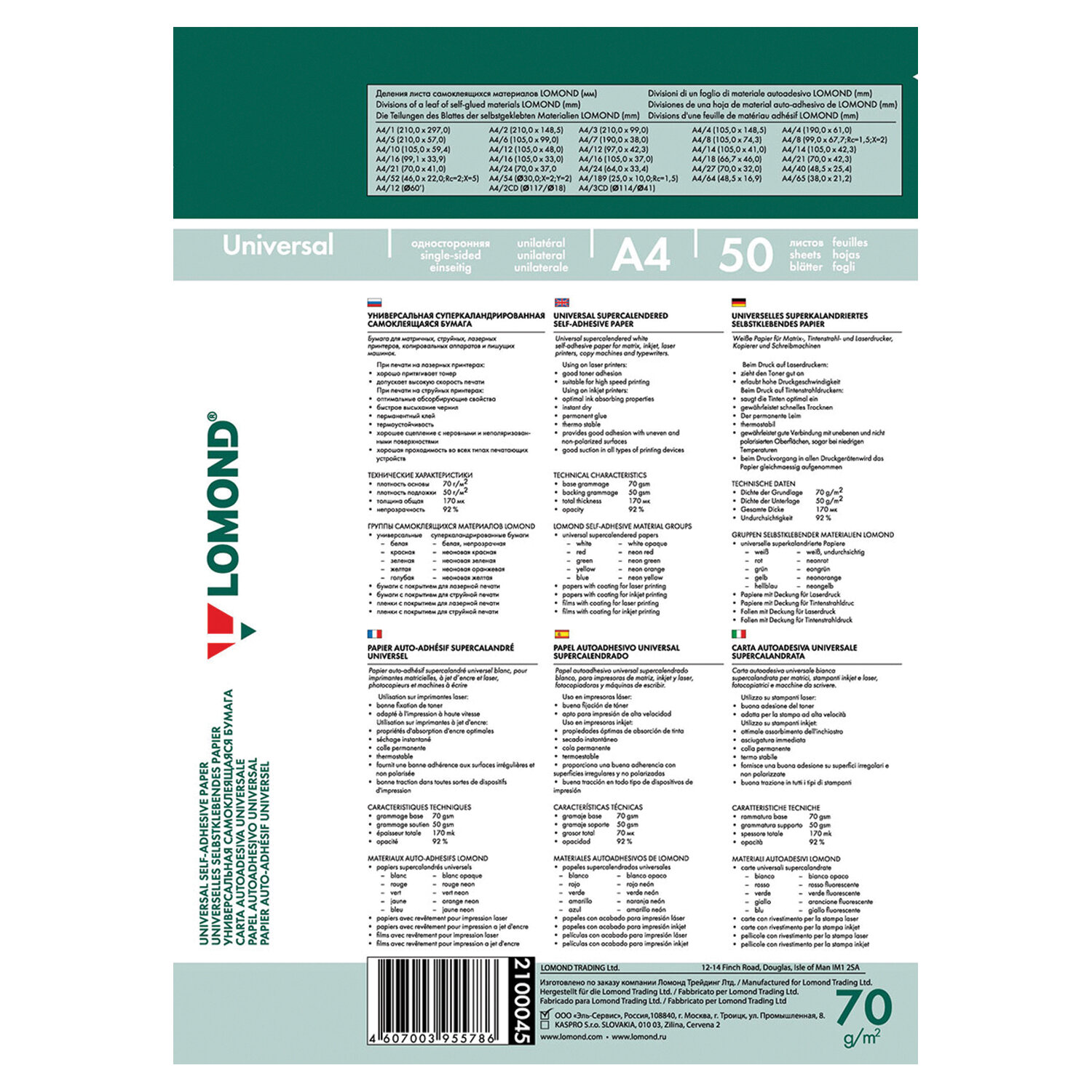 Этикетки самоклеящиеся универсальные LOMOND