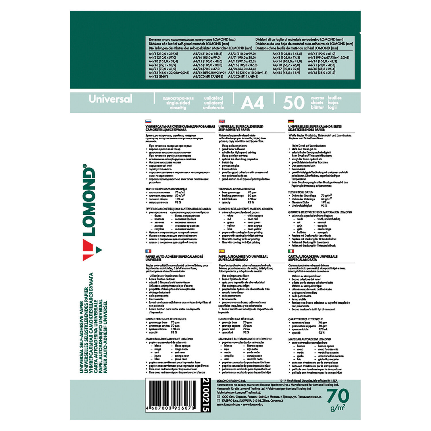 Этикетки самоклеящиеся универсальные LOMOND