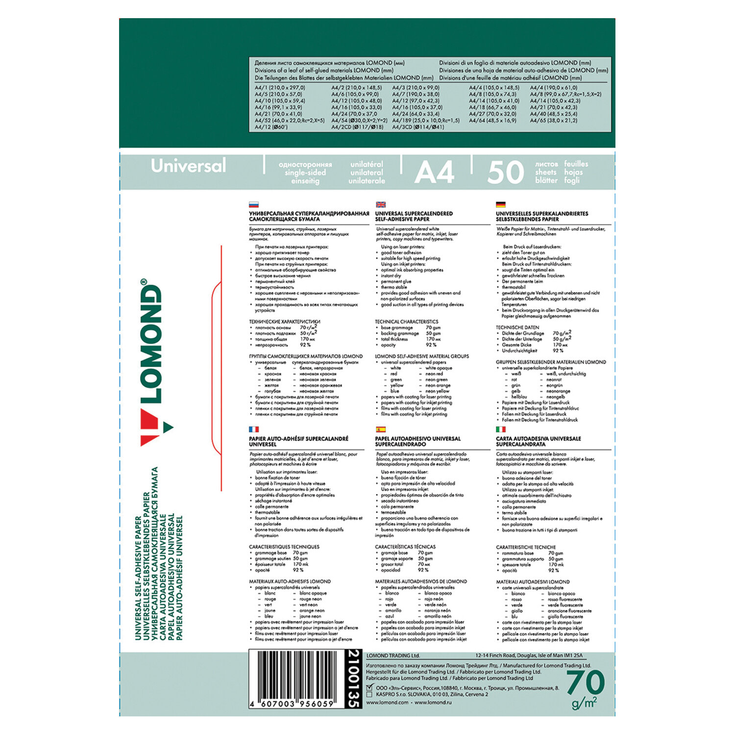 Этикетки самоклеящиеся универсальные LOMOND