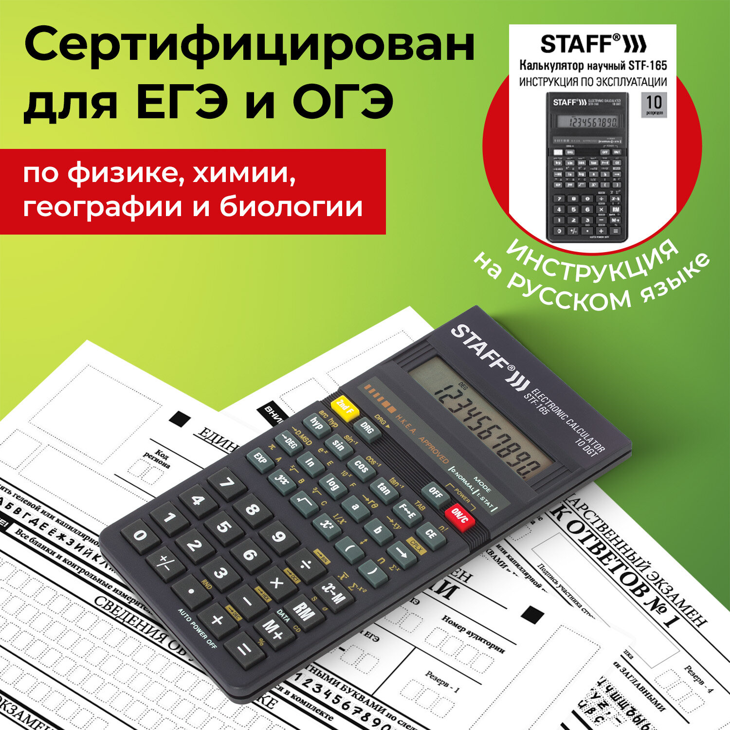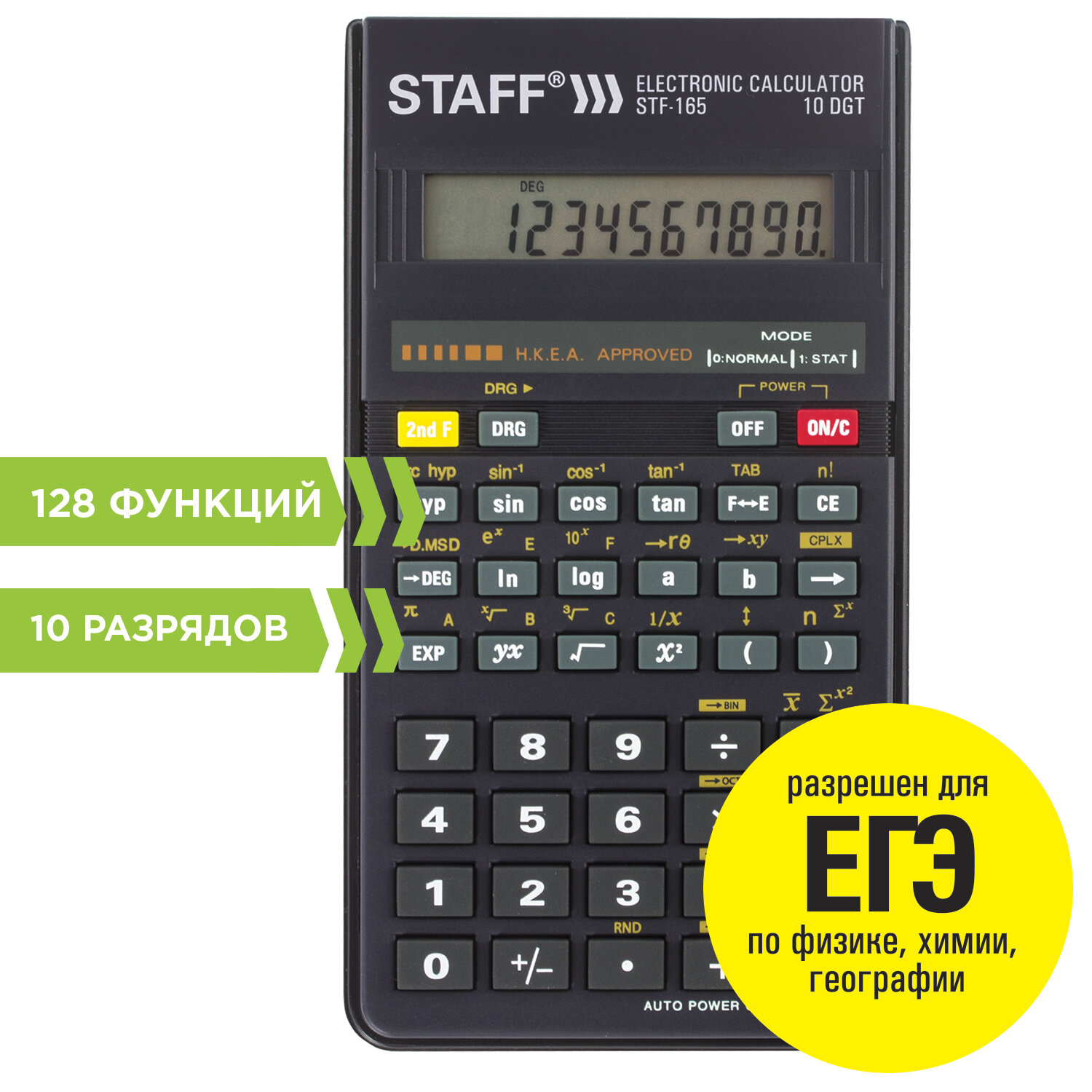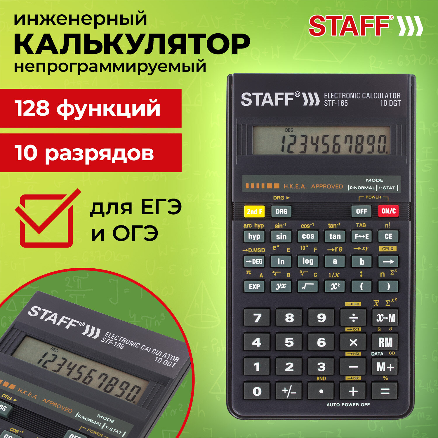 - Калькулятор инженерный STAFF STF-165 (143х78 мм), 128 функций, 10 разрядов, 250122