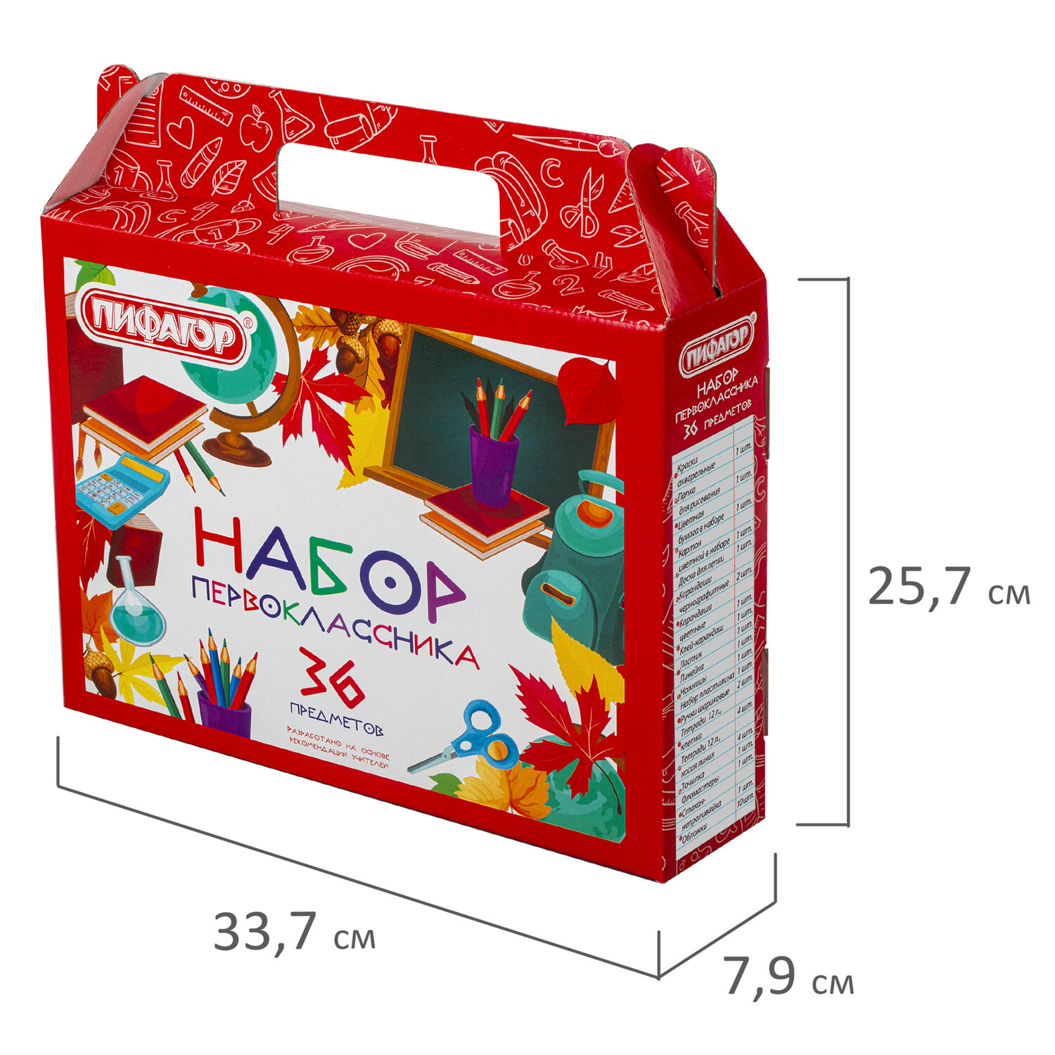 - Набор школьных принадлежностей в подарочной коробке ПИФАГОР "НАБОР ПЕРВОКЛАССНИКА", 36 предметов, 880121