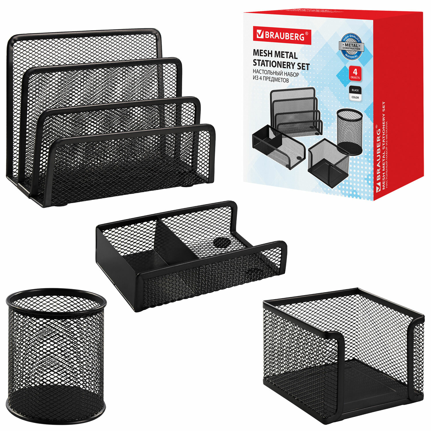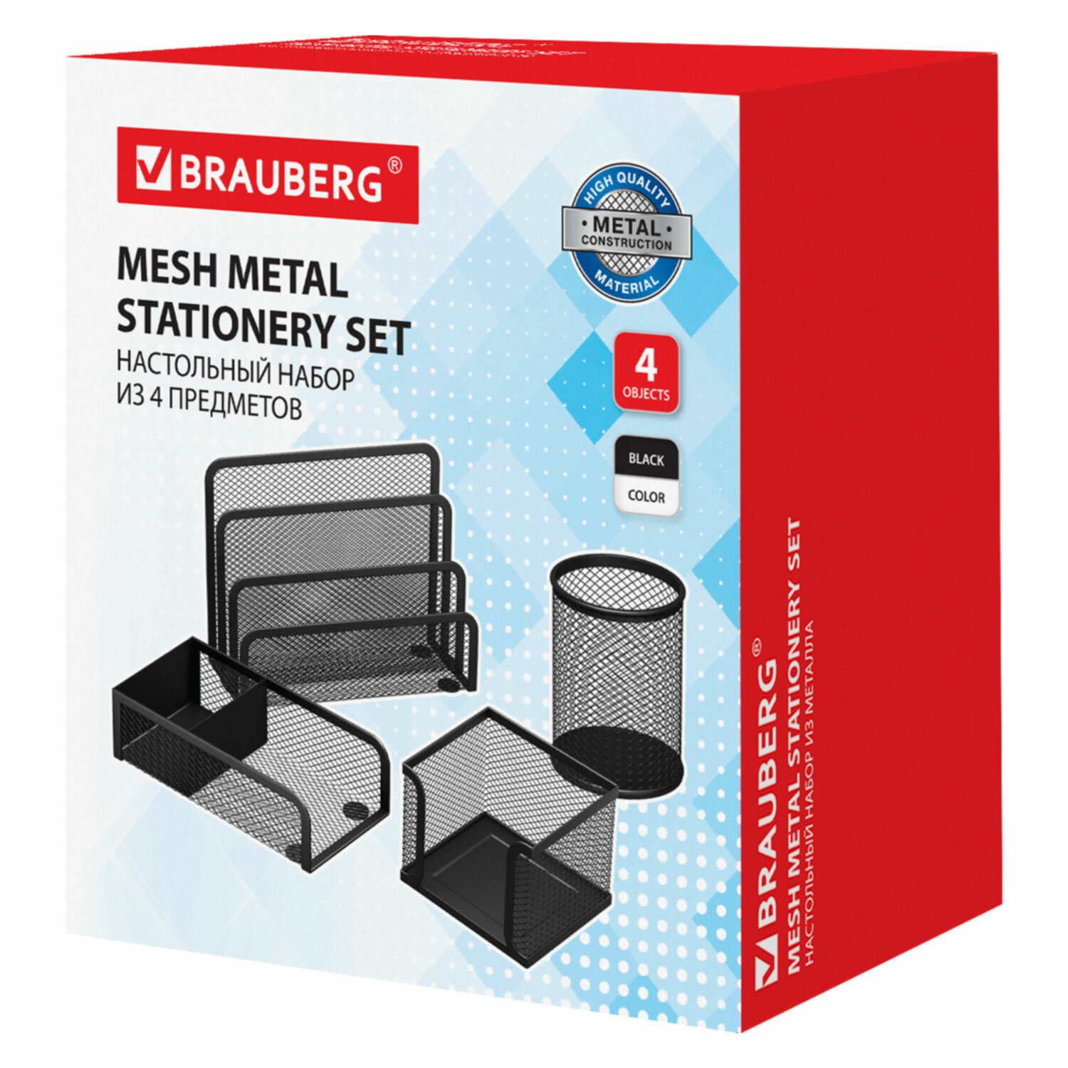 Набор поставляется без канцелярского наполнения в индивидуальной коробке. Настольный набор из металла BRAUBERG "Germanium", 4 предмета, черный, 231964
