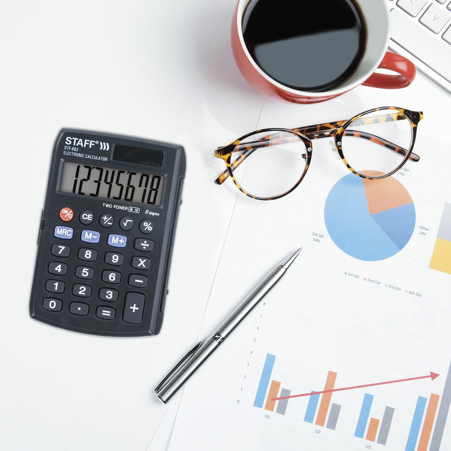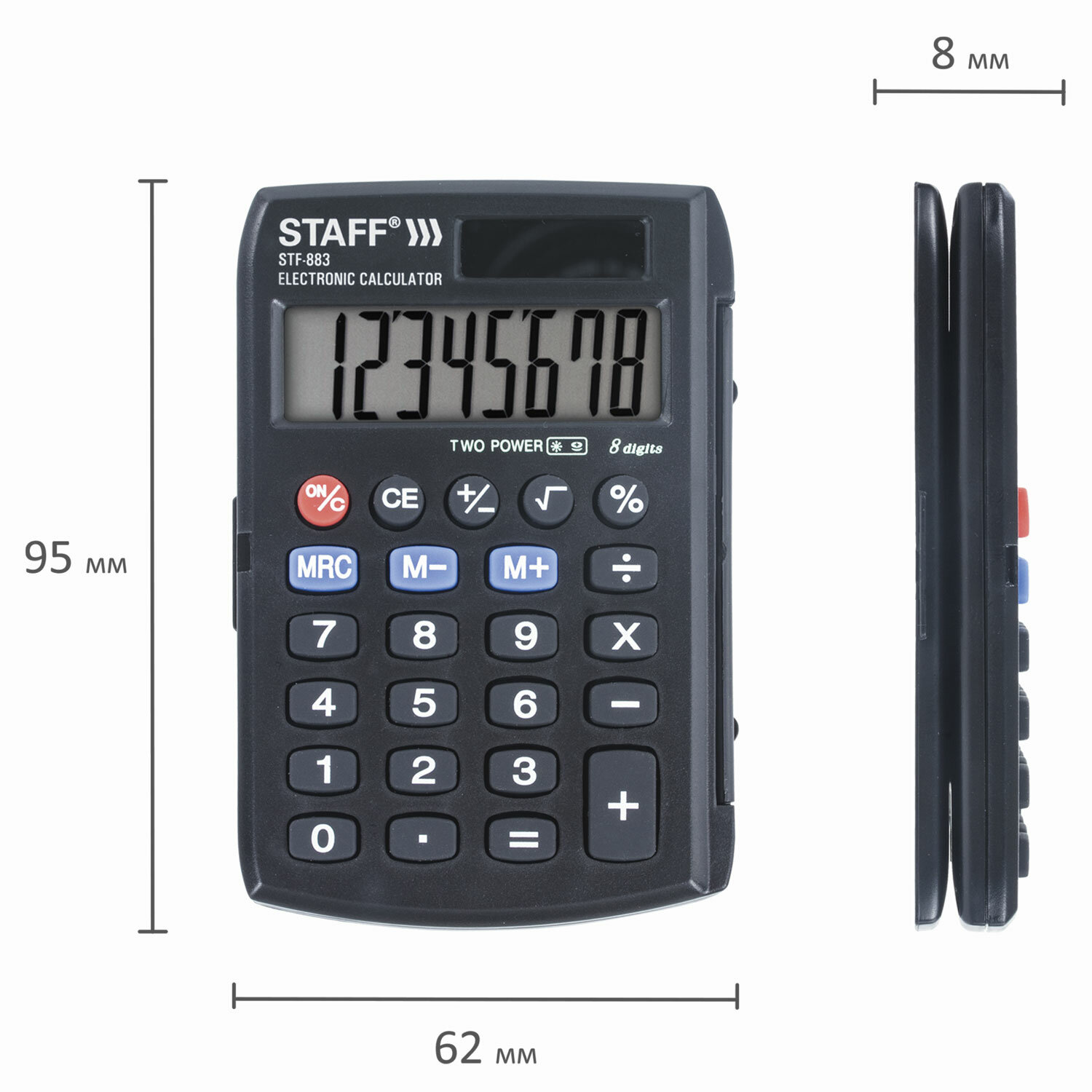 - Калькулятор карманный STAFF STF-883 (95х62 мм), 8 разрядов, двойное питание, 250196