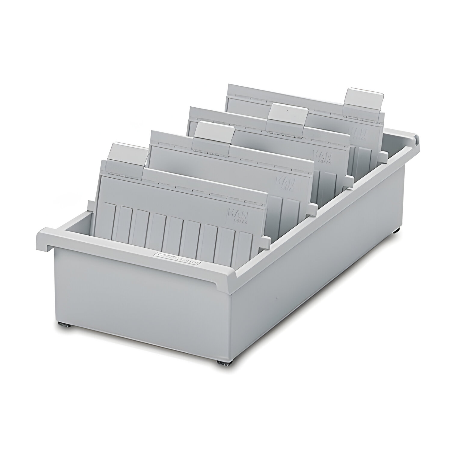 Картотека пластиковая ФОРМАТ А5 (210х148 мм) горизонтальная на 1300 карт, серая, HAN (Германия), НА955/0/11
