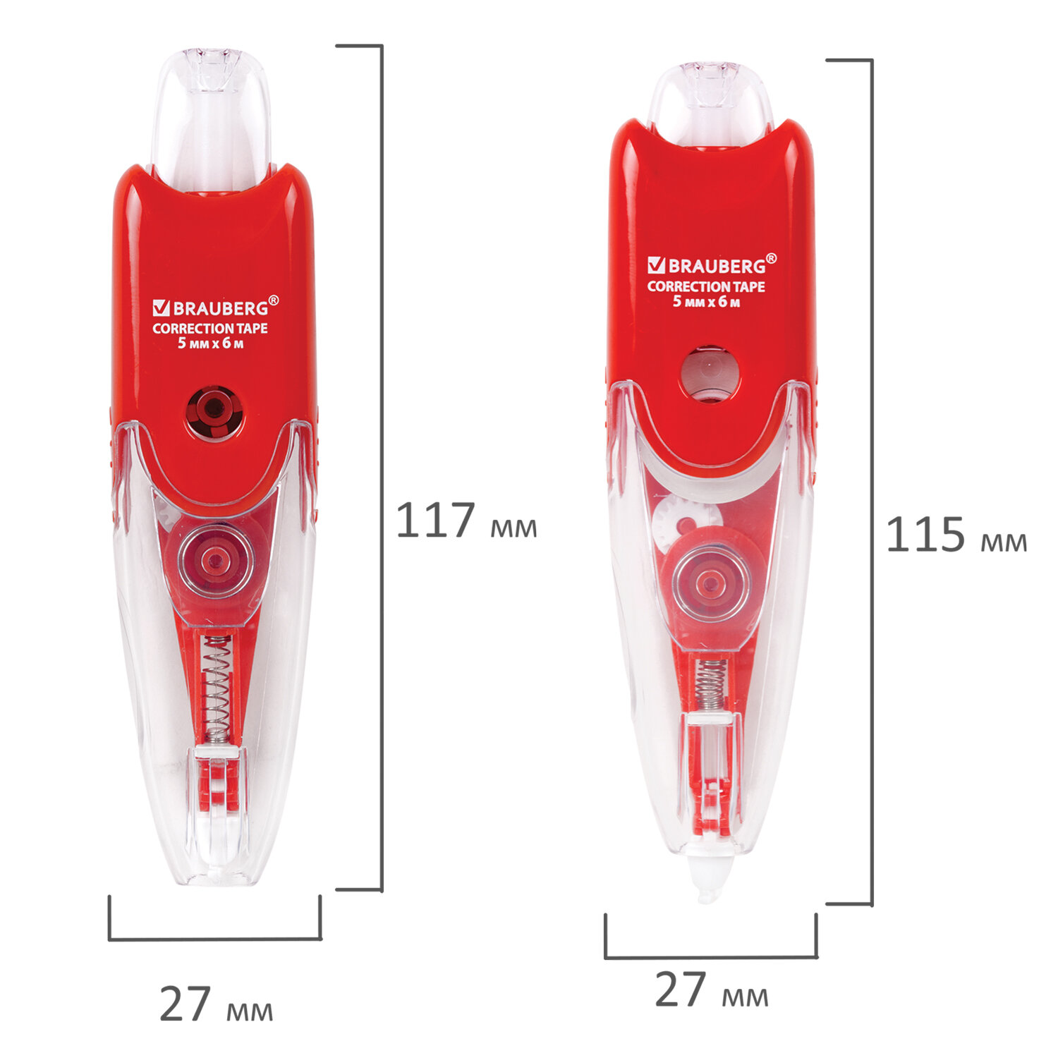 - Корректирующая лента BRAUBERG "Click", 5 мм х 6 м, корпус прозрачный, автоматическая, блистер, 272660