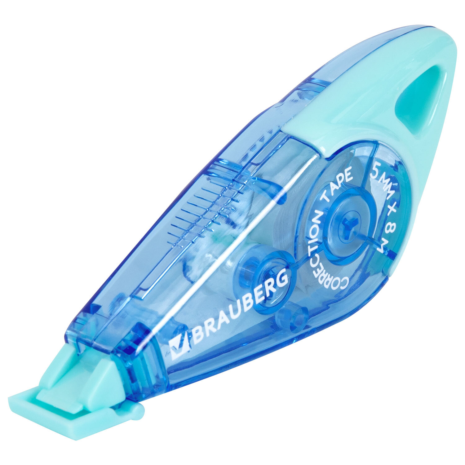 - Корректирующая лента BRAUBERG "TRIOS", 5 мм х 8 м, корпус мятно-голубой с подвесом, блистер, 273023