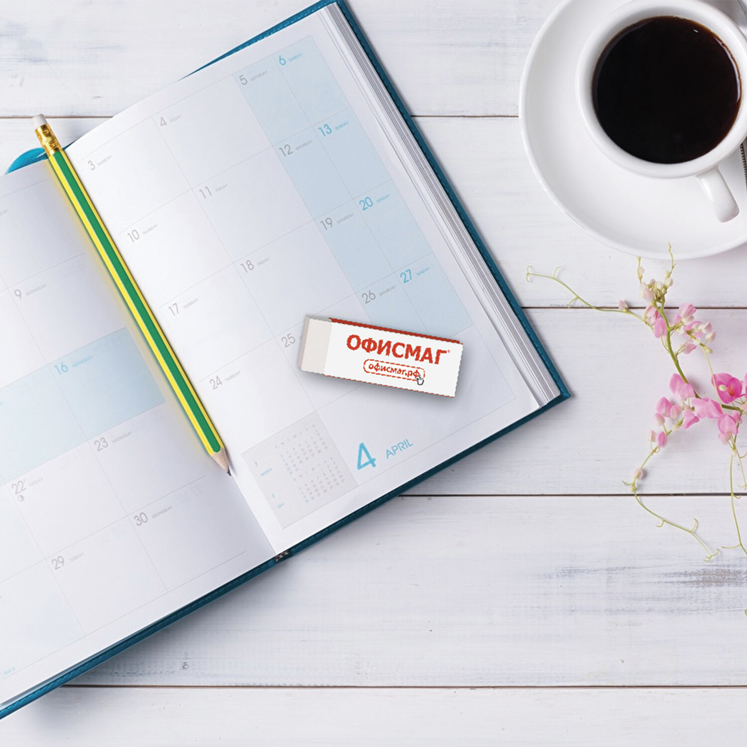 - Ластик большой ОФИСМАГ, 60х20х11 мм, белый, прямоугольный, картонный держатель, 222469
