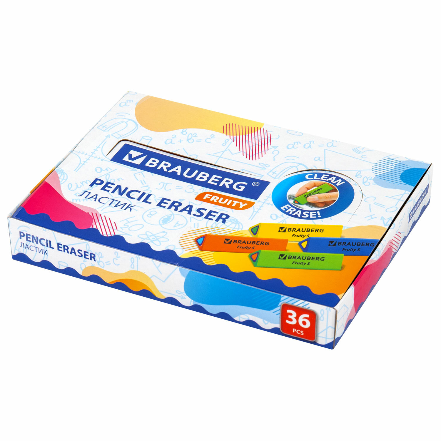- Ластик BRAUBERG "Fruity S", 44х15х15 мм, цвет ассорти, треугольный, 228713
