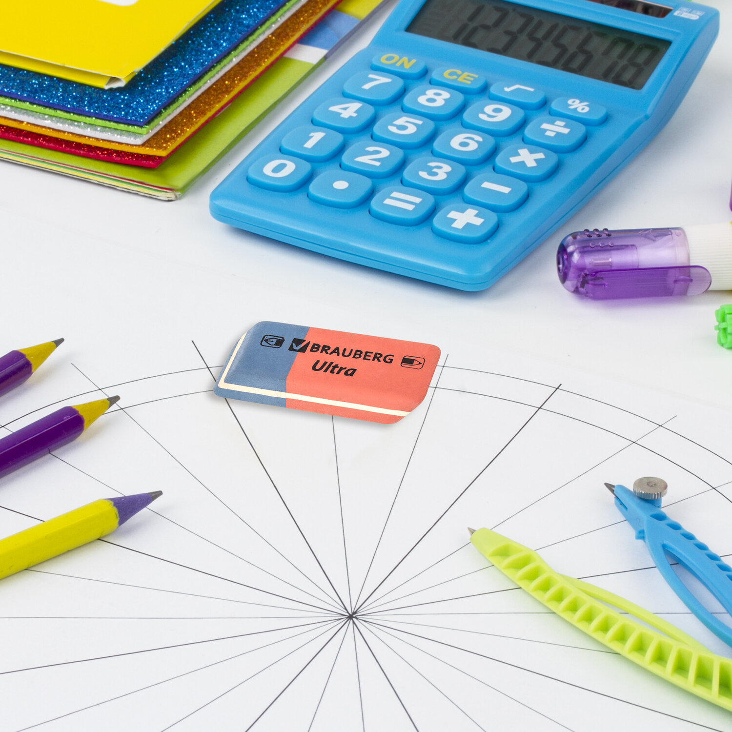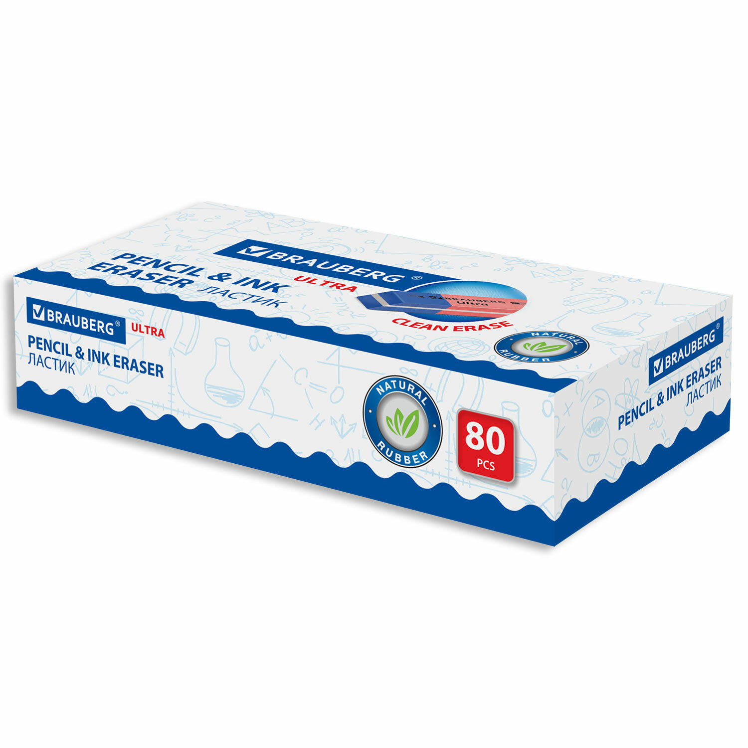 - Ластик BRAUBERG "Ultra", 41х14х8 мм, красно-синий, натуральный каучук, 228708
