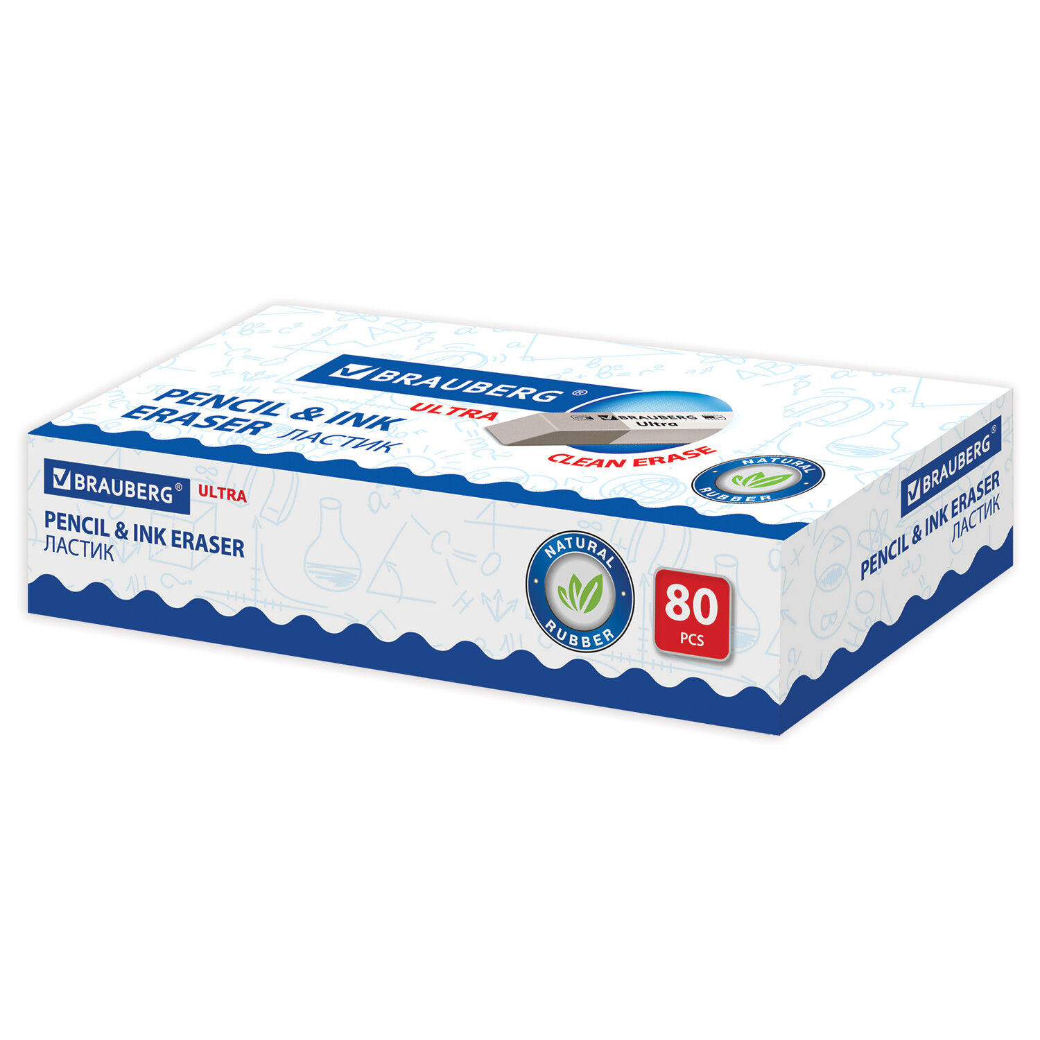 - Ластик BRAUBERG "Ultra", 41х14х8 мм, серо-белый, натуральный каучук, 228703