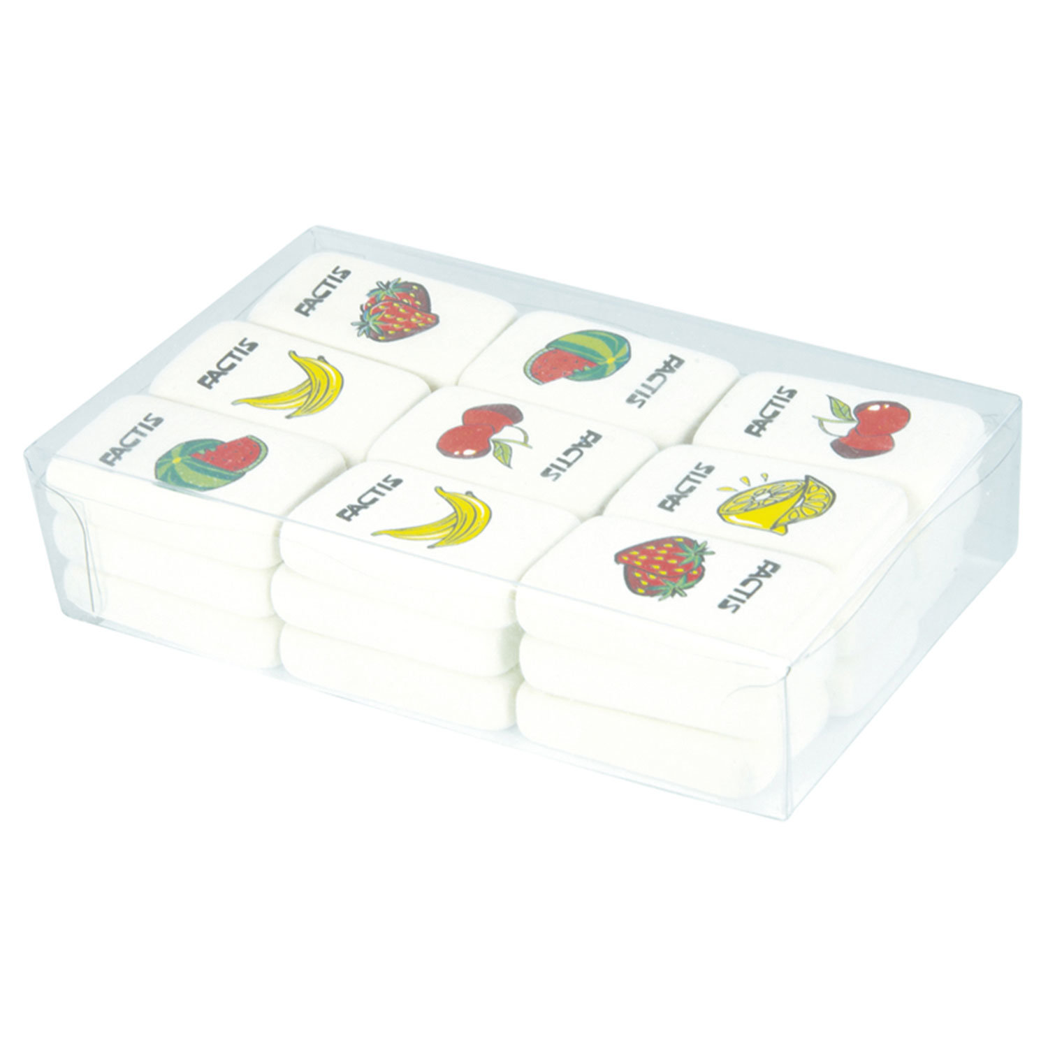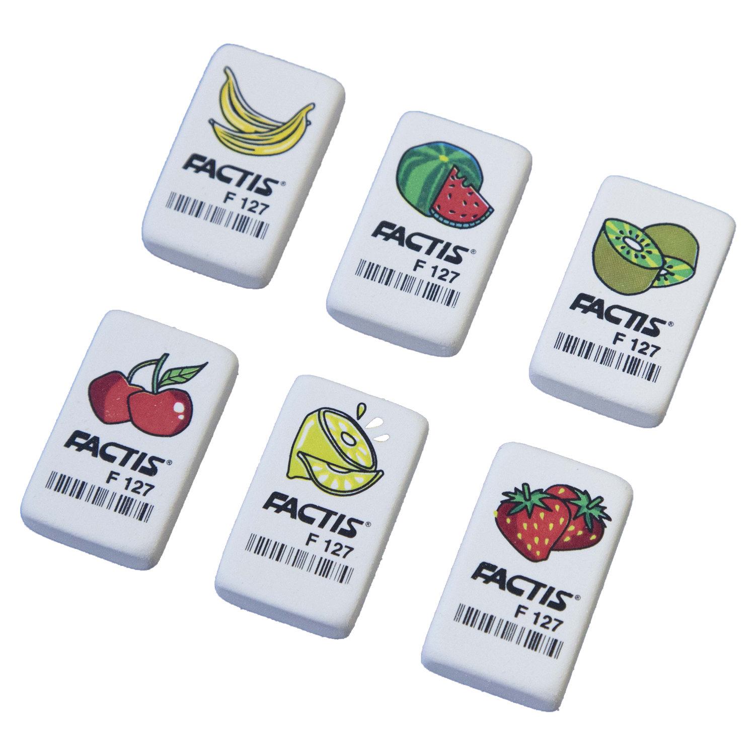 Мягкий ластик F 127 имеет прямоугольную форму и поставляется в белом цвете с дизайном t;Фруктыt; в ассорти. Обеспечит легкое и чистое стирание без образования бумажной пыли. Размер - 40х24х10 мм. Ластик FACTIS F 127 (Испания), 40х24х10 мм, ассорти, прямоугольный, мягкий, CNFF127