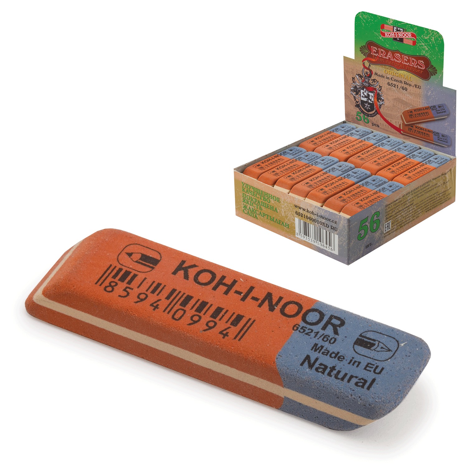 - Ластик KOH-I-NOOR 6521/60, 57x14x8 мм, красно-синий, прямоугольный, скошенные края, натуральный каучук, 6521060010KDRU