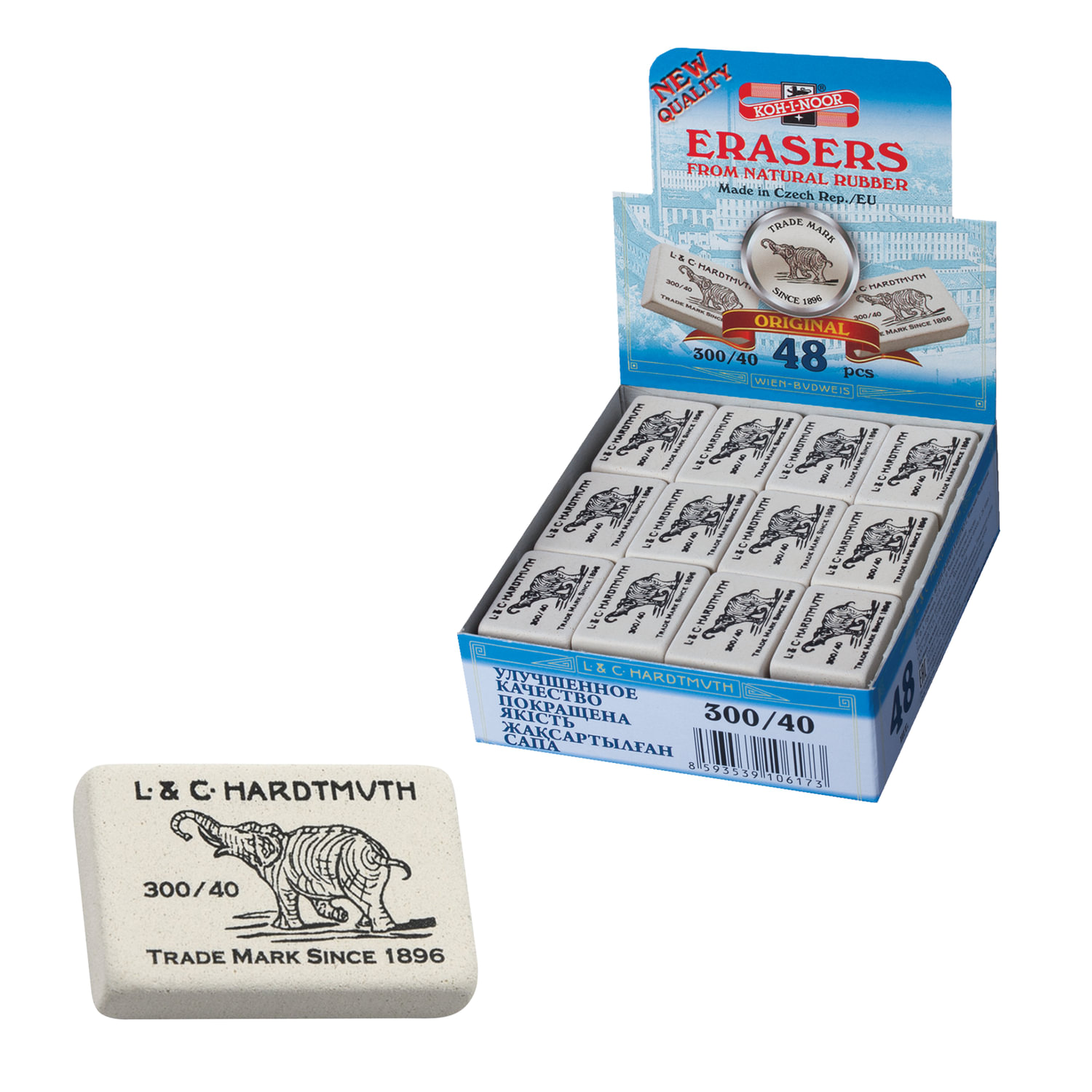 - Ластик KOH-I-NOOR "Слон" 300/40, 35,5x23x8 мм, белый, прямоугольный, натуральный каучук, 0300040026KDRU