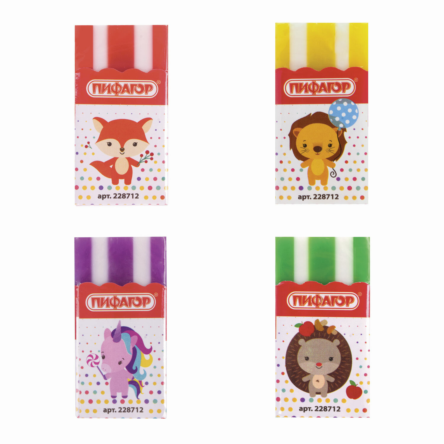 - Ластик ПИФАГОР "ЭНИКИ-БЕНИКИ", 50х27х8мм, цвет ассорти, экологичный ПВХ, картонный держатель, 228712