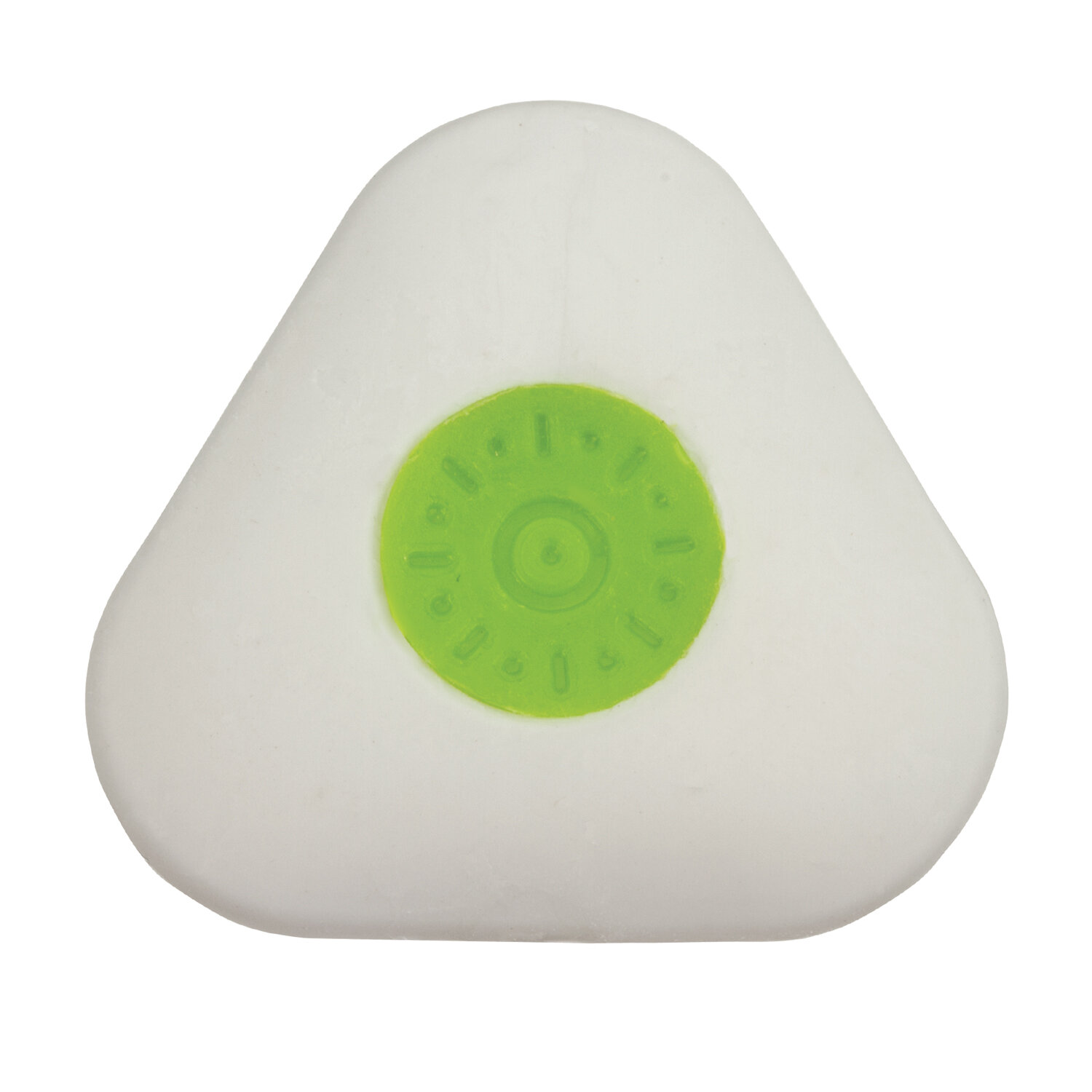 Предназначен для удаления надписей и рисунков, сделанных чернографитными карандашами. Имеет треугольную форму. Пластиковый держатель салатового цвета не только служит отличным дополнением к белому ластику, но и обеспечивает комфорт при письме. Размер - 35х35х10 мм. Ластики упакованы в дисплей. Ластик STAFF "College" PE-068, 35х35х10 мм, треугольный, салатовый пластиковый держатель, 228068