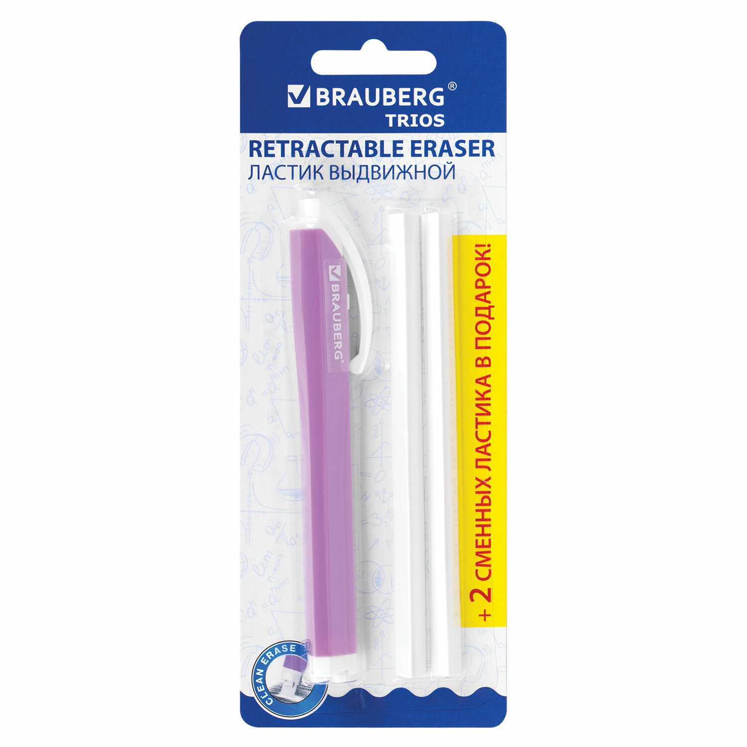 - Ластик выдвижной + 2 сменных ластика BRAUBERG "TRIOS", 124х12х12 мм, лавандовый корпус, 272691