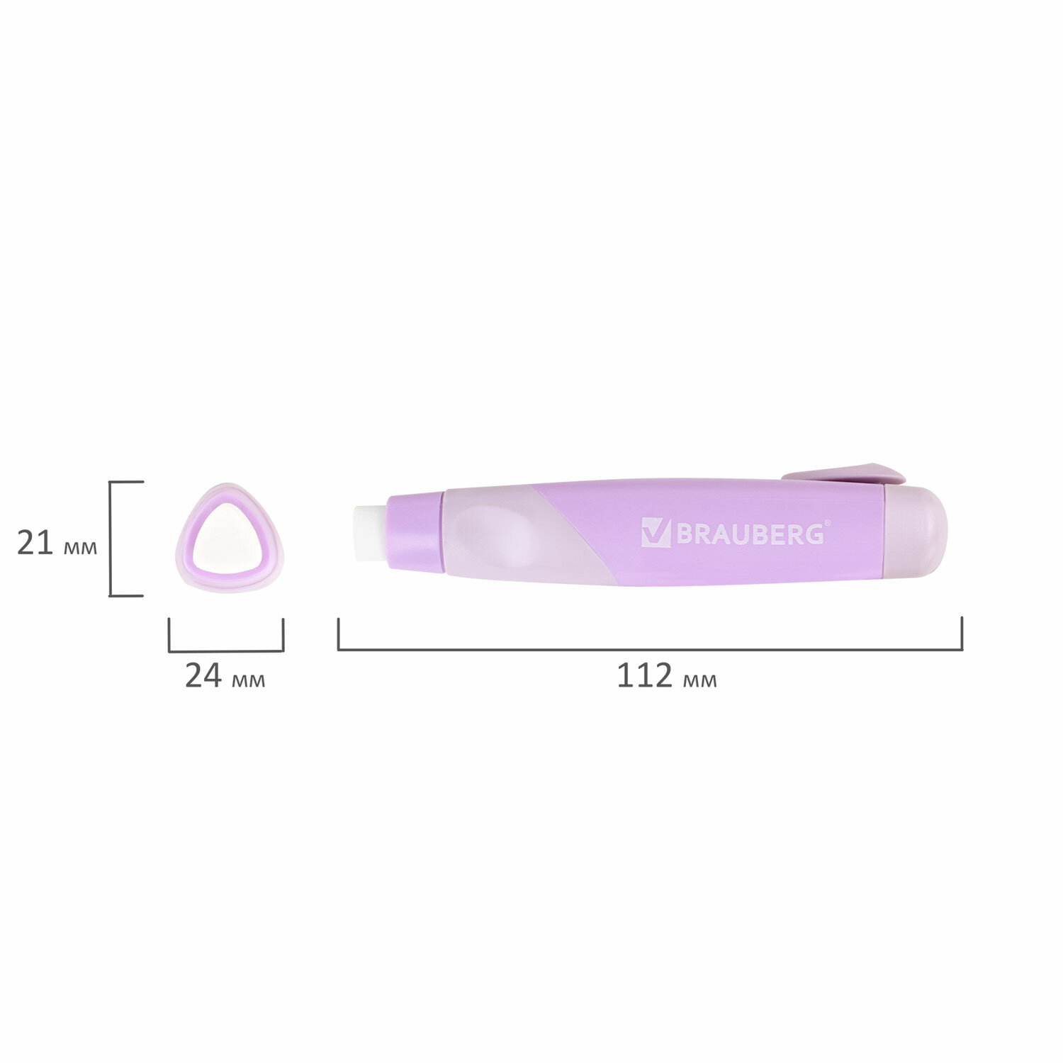 Длина ластика – 60 мм, длина вместе с корпусом – 112 мм. Ластик выдвижной BRAUBERG "REWIND", 112х21х24 мм, белый, пастельные цвета корпуса ассорти, 272686