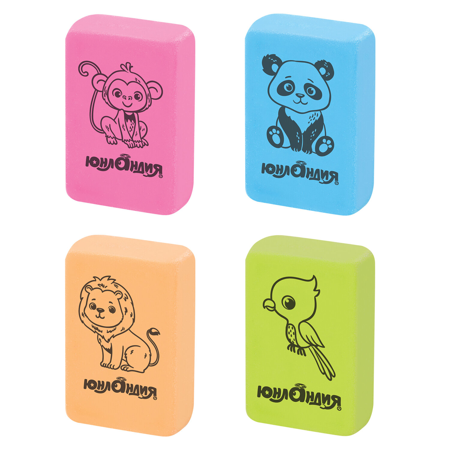 - Ластик ЮНЛАНДИЯ "Зверушки", 28х18х10 мм, цвет ассорти, прямоугольный, 228706