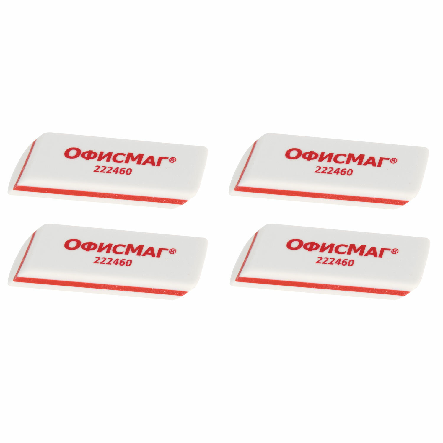 - Набор ластиков ОФИСМАГ 4 шт., 57х18х8 мм, белые, прямоугольные, скошенные края, 222460