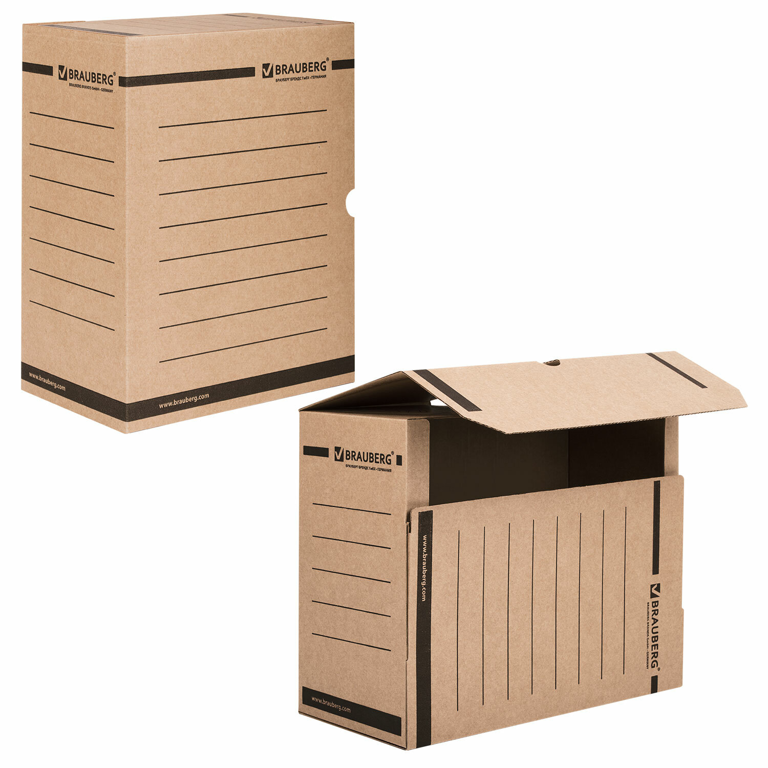 - Короб архивный с клапаном А4 (260х325 мм), 150 мм, до 1400 листов, плотный, микрогофрокартон, BRAUBERG, 124849