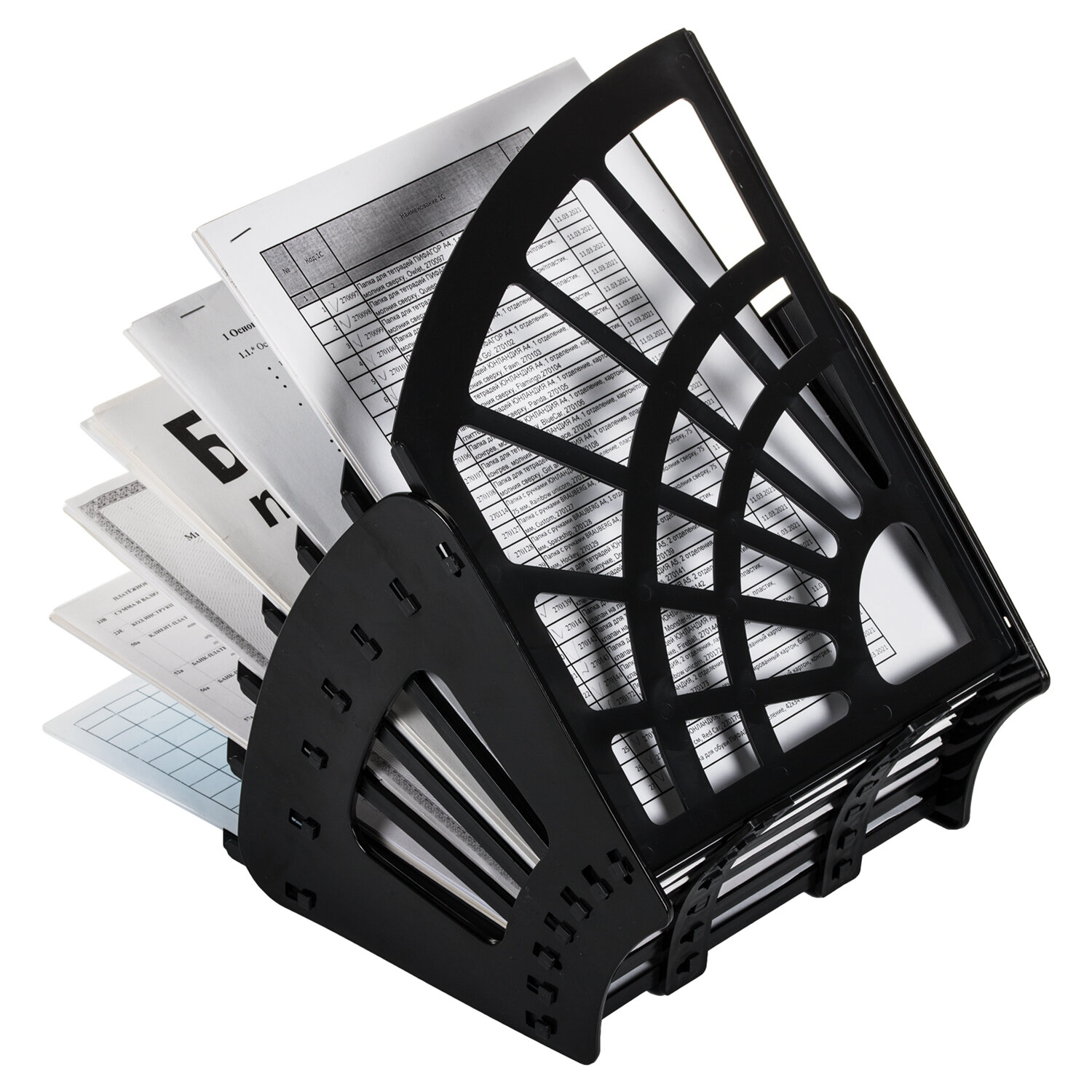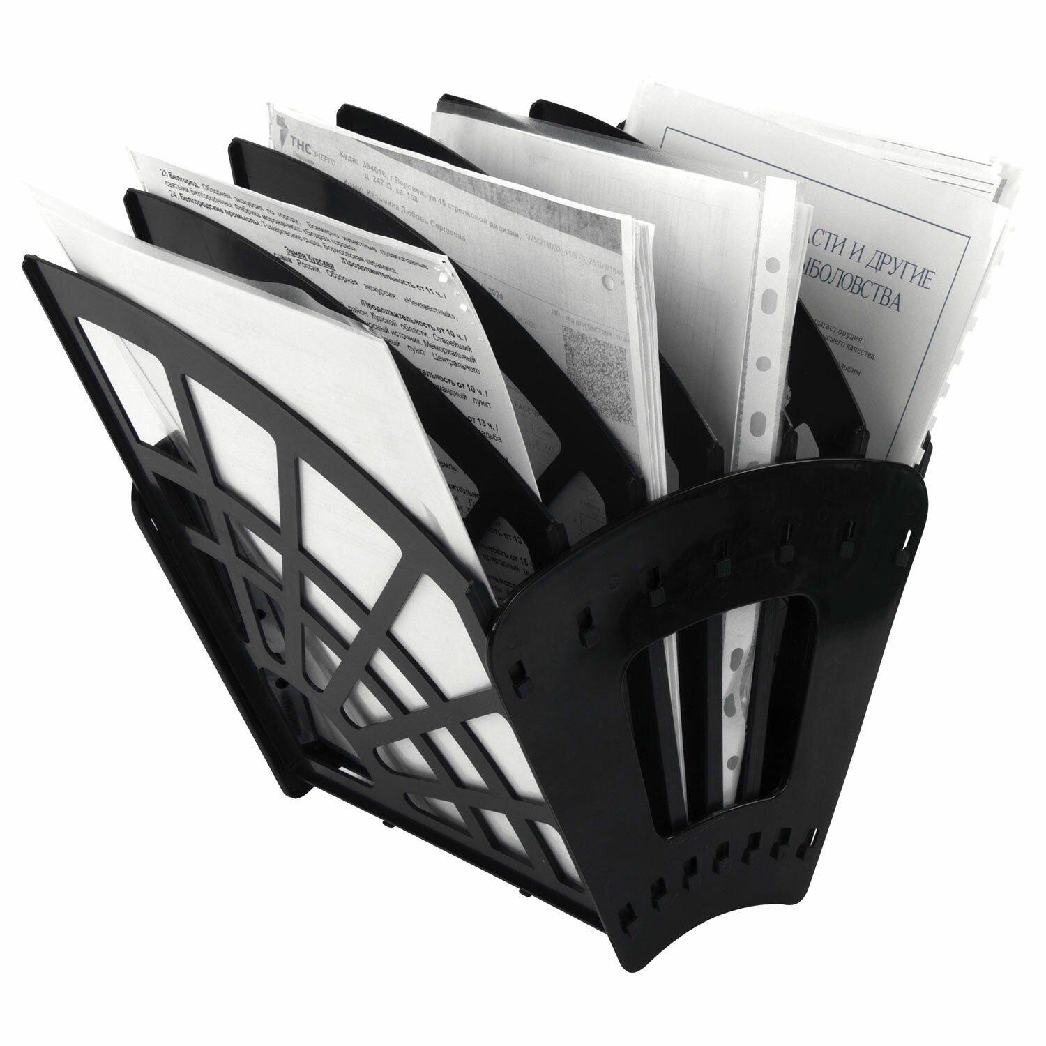 - Лоток для бумаг веерный STAFF 7-ми секционный, 6 отделений, сетчатый, черный, 237023