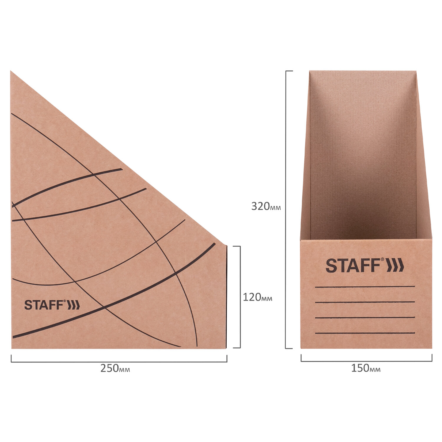 - Лоток вертикальный для бумаг (250х320 мм), увеличенная ширина 150 мм, до 1400 листов, микрогофрокартон, STAFF, БУРЫЙ, 126515