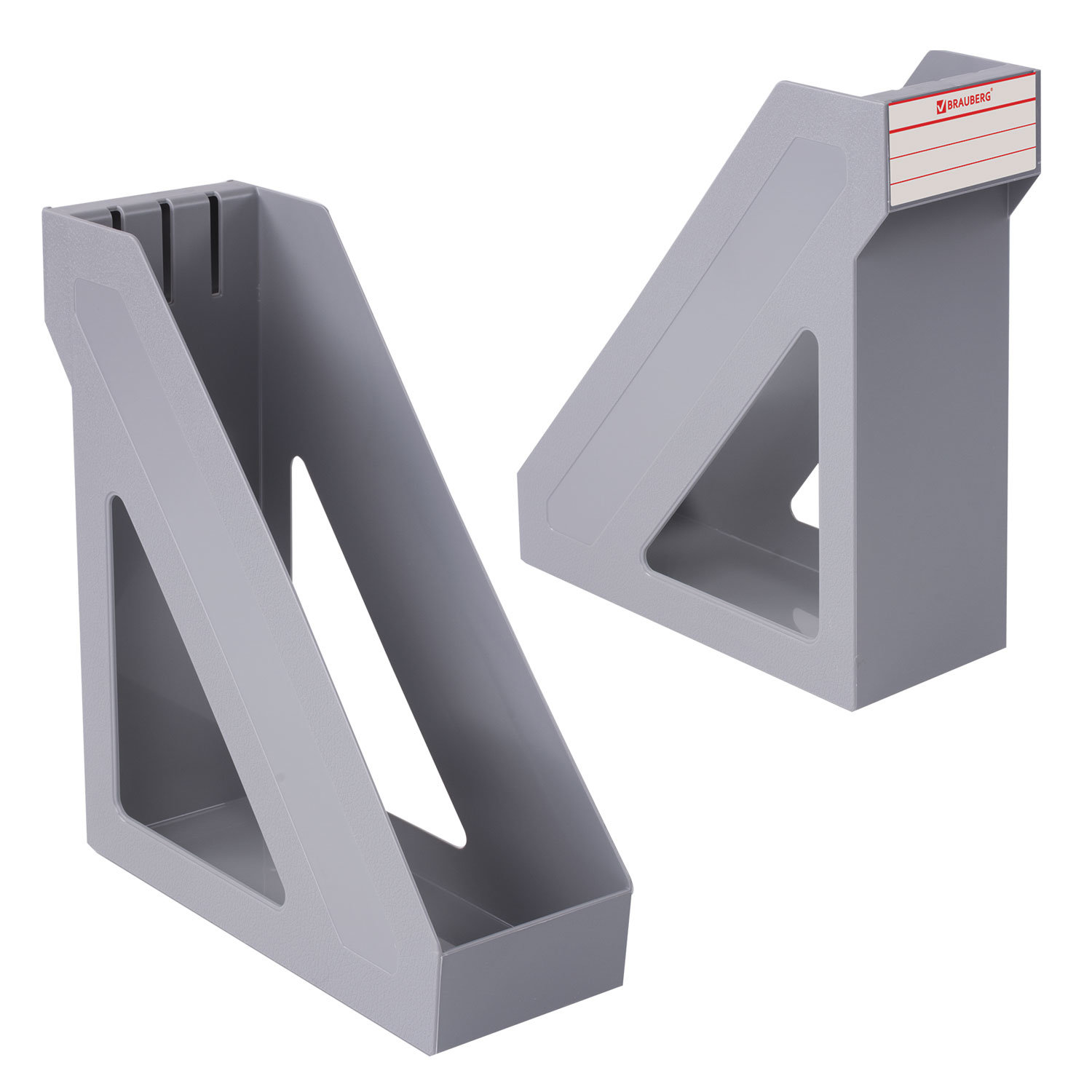 - Лоток вертикальный для бумаг BRAUBERG "Basic", 265х100х285 мм, серый, 237010