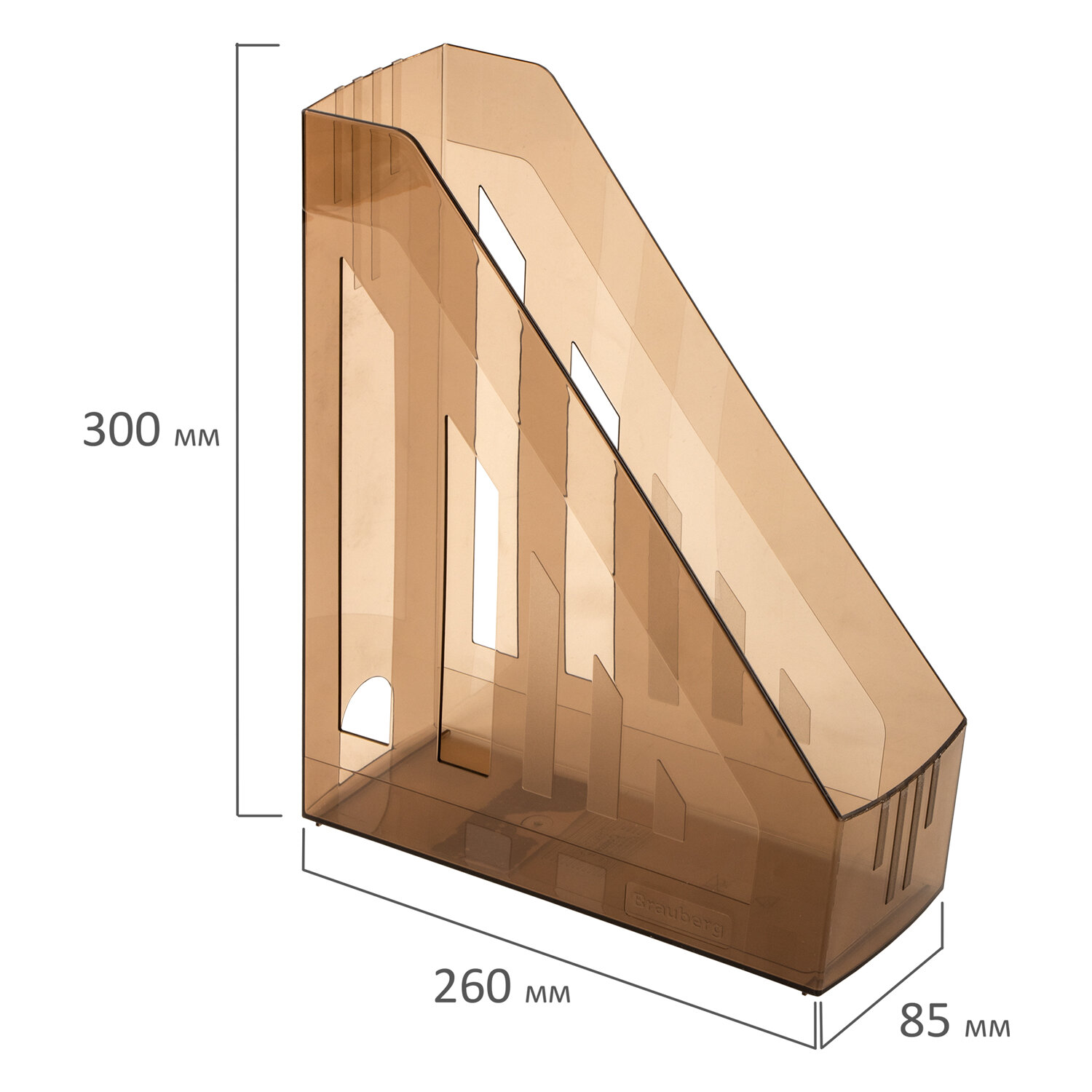 - Лоток вертикальный для бумаг BRAUBERG "Contract" (260х85х300 мм), отверстия на торцах, тонированный, 230892