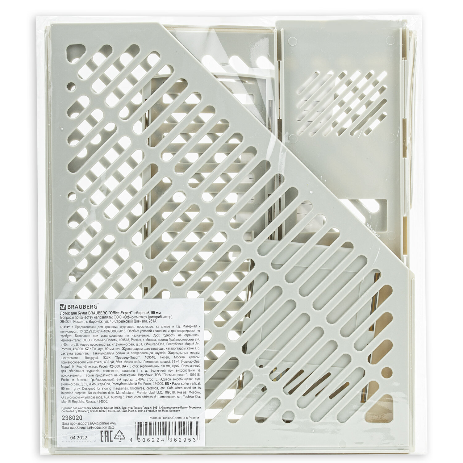 - Лоток вертикальный для бумаг BRAUBERG "Office-Expert", 90 мм, сетчатый, сборный, серый, 238020