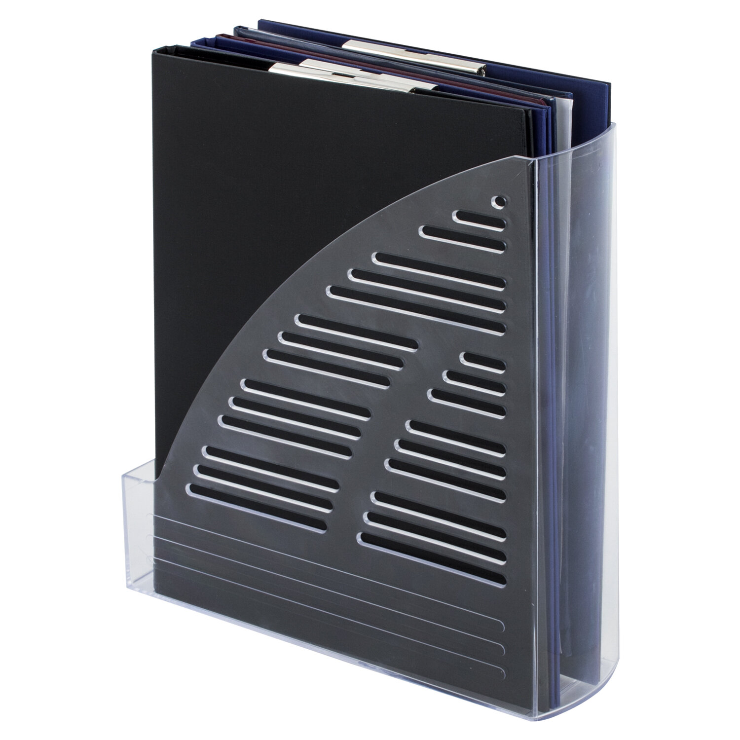 Лоток вертикальный для бумаг BRAUBERG "Standard", 245х70х295 мм, прозрачный, 237223