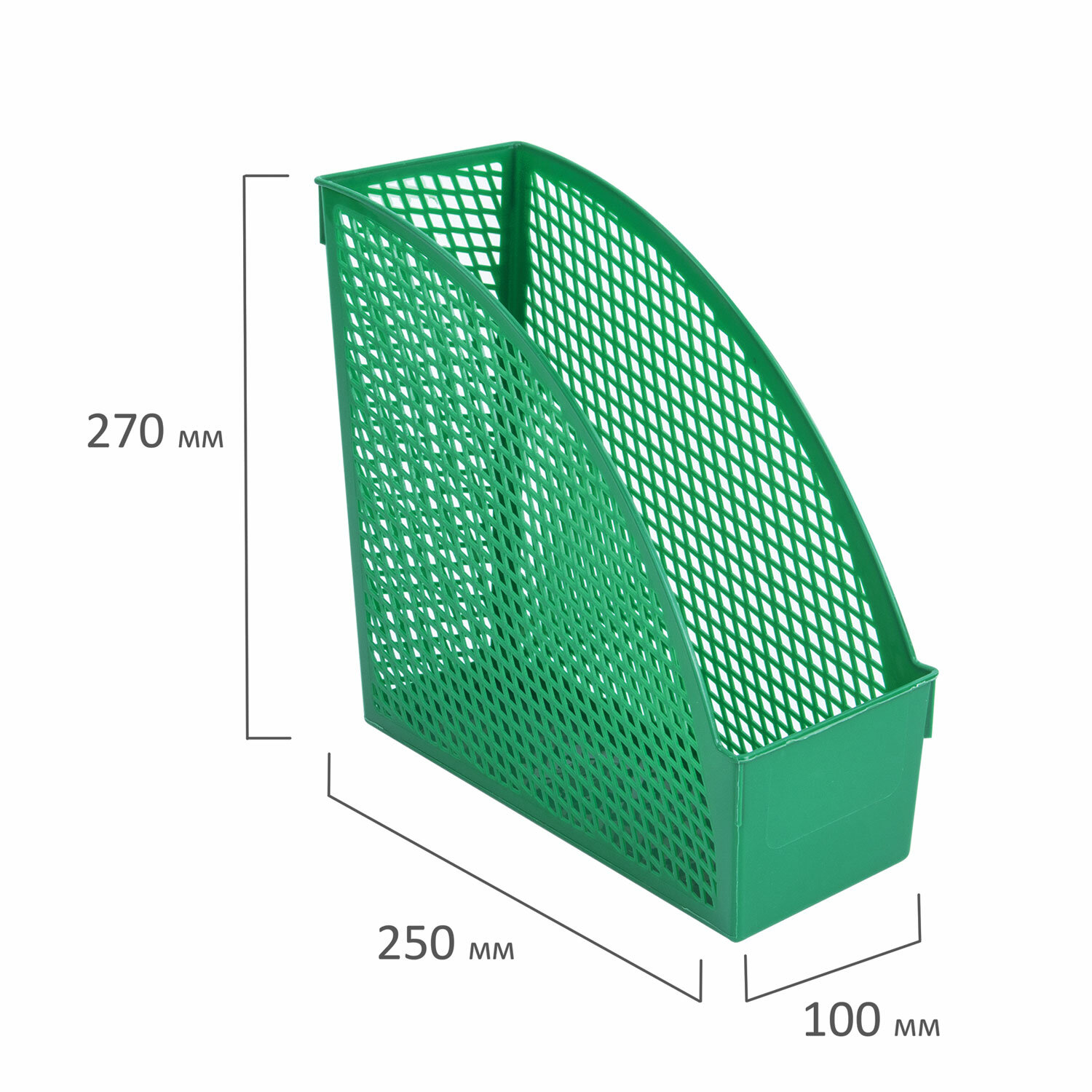Предназначен для хранения бумажной продукции формата А4 на столе или в шкафу. Изготовлен из полипропилена черного цвета. Прочная сетчатая поверхность. Одно вместительное отделение шириной 100 мм. Устойчивая конструкция. Размер - 270х250 мм.