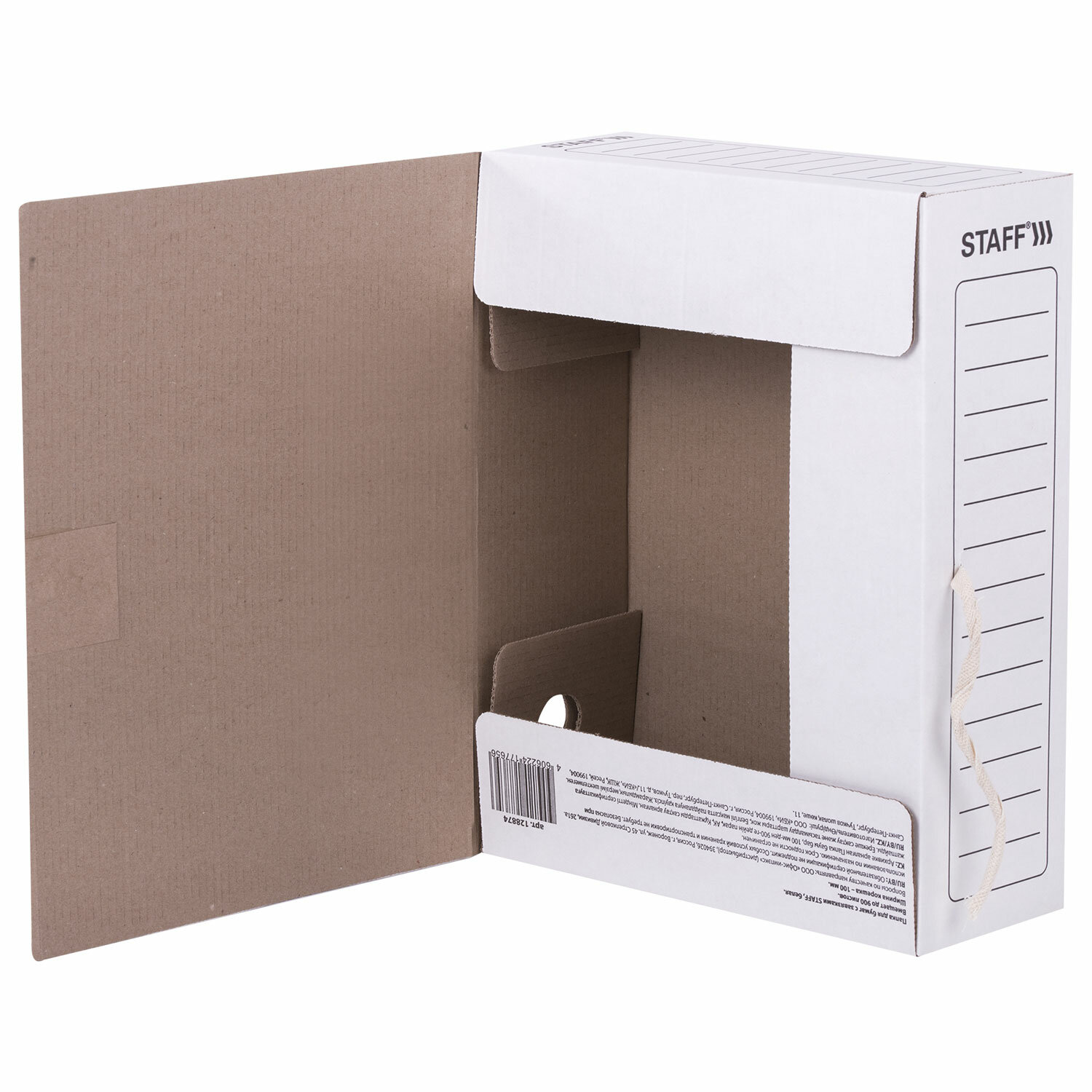- Папка архивная с завязками А4 (325х250 мм), 100 мм, до 900 листов, микрогофрокартон, БЕЛАЯ, STAFF, 128874