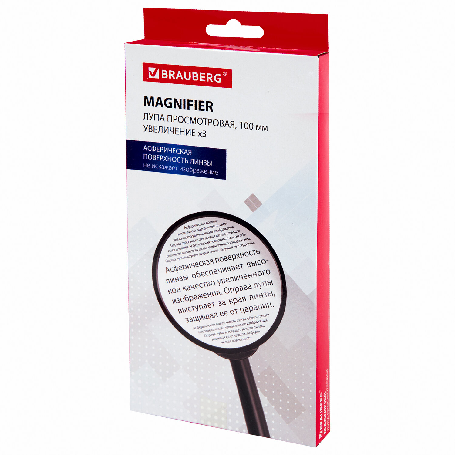 - Лупа просмотровая BRAUBERG, диаметр 100 мм, увеличение 3, 451802