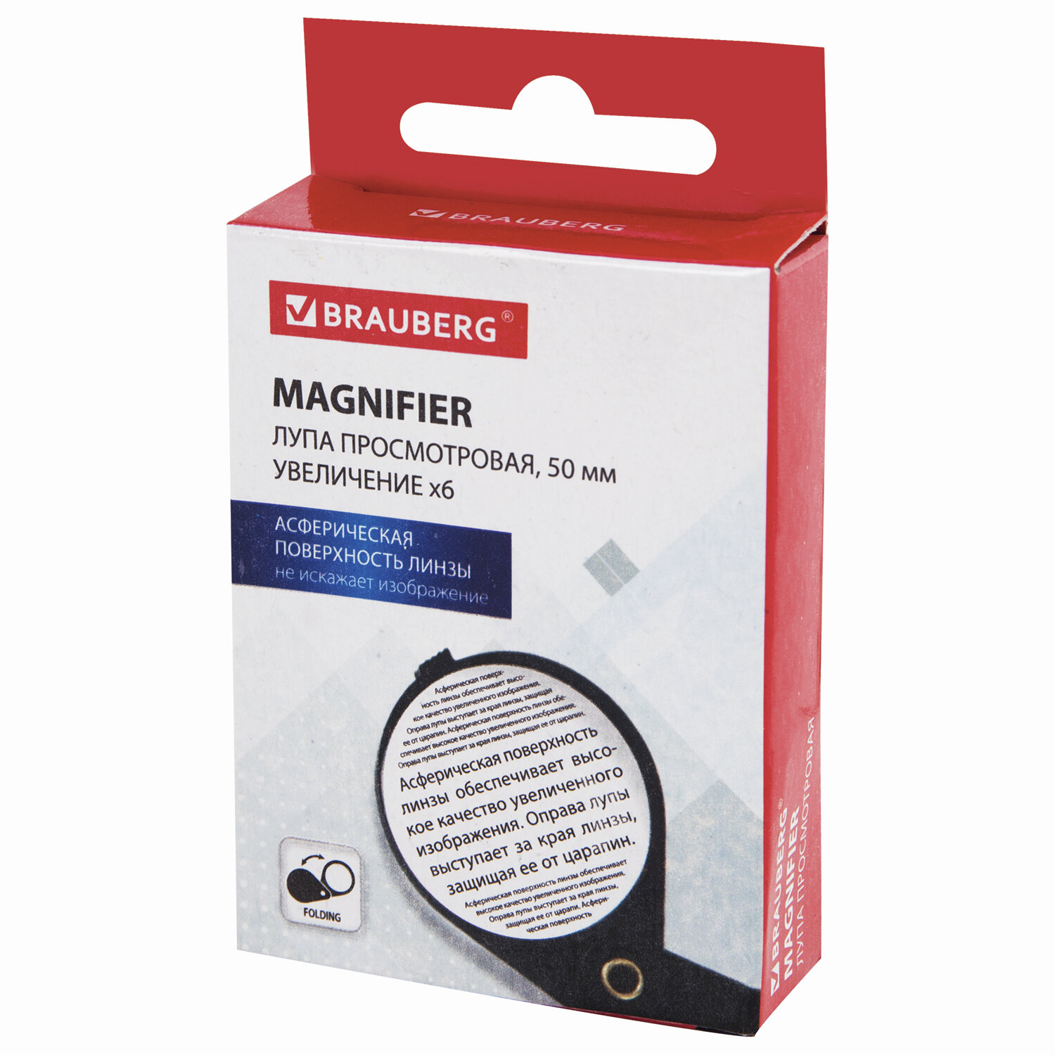 - Лупа просмотровая BRAUBERG, складная, диаметр 50 мм, увеличение 6, 451798